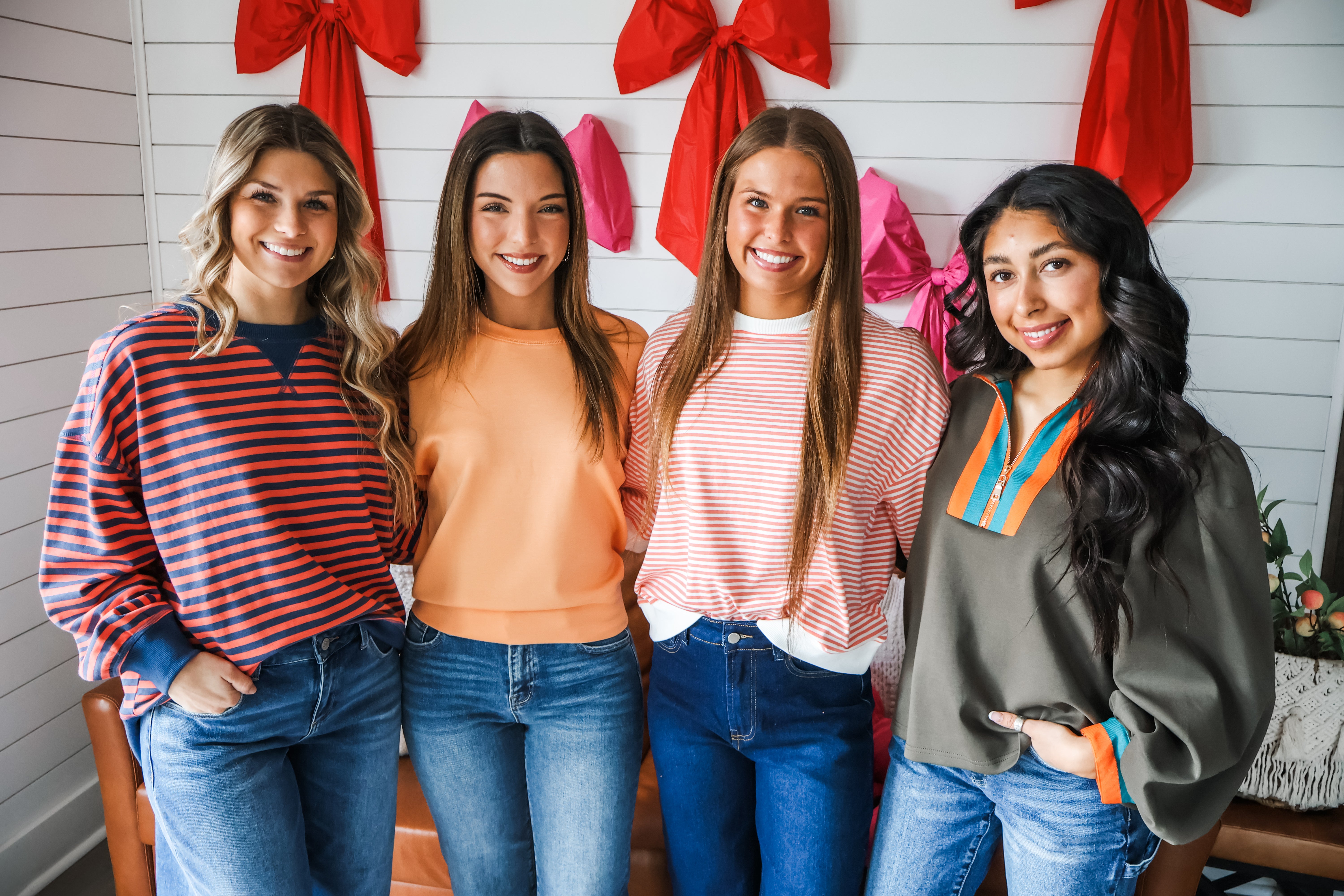 Elevated essentials to step up your spring style! Featured in a relaxed silhouette for the comfiest fit, this pullover is a simple look with a cool flair. Crafted from a smooth scuba knit fabrication, this top can be dressy or casual depending on how you style it. With a crewneck, drop shoulder sleeves, exposed stitching and a banded hem.