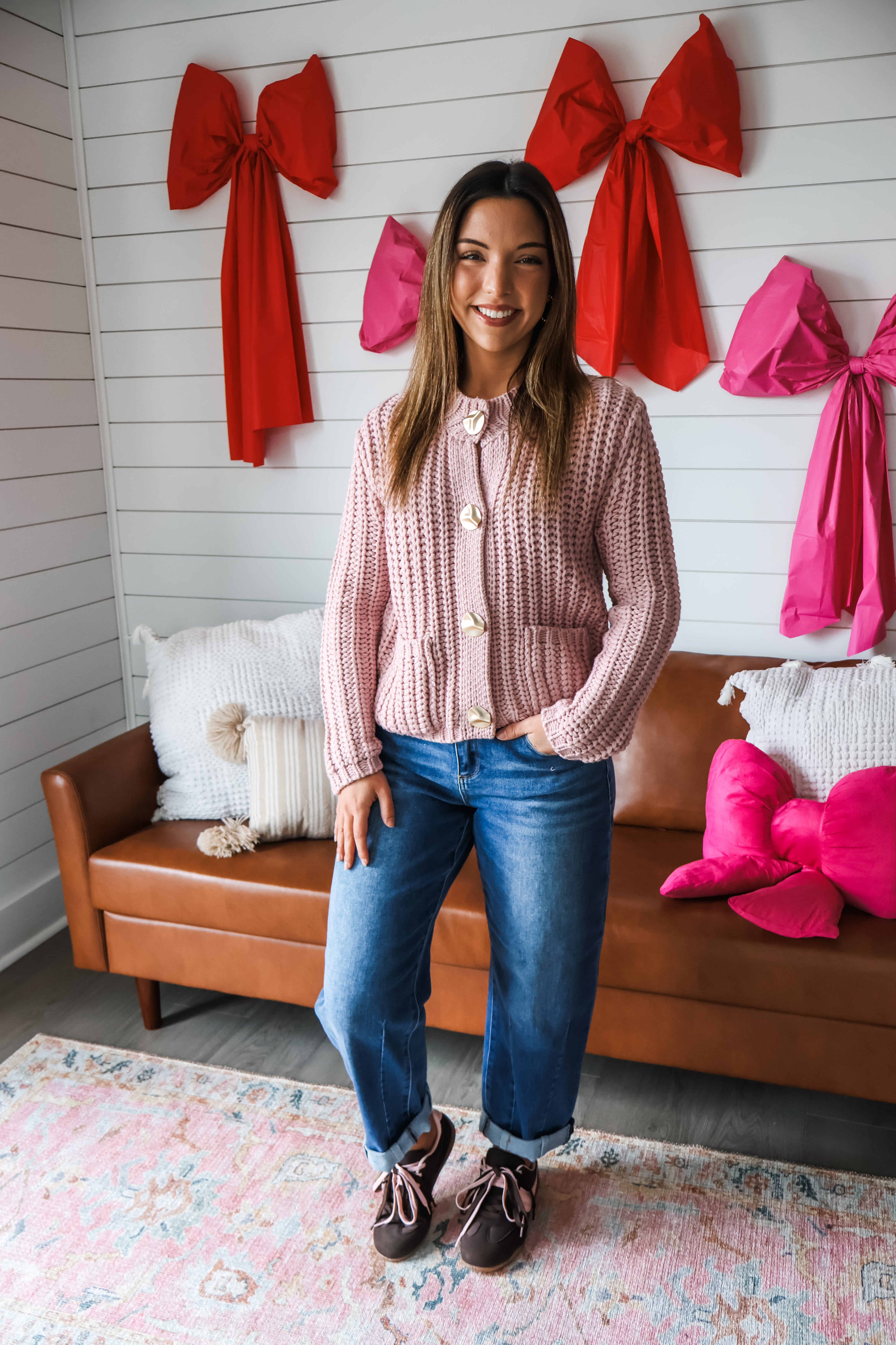 Cozy up in a chunky cardigan sweater! Fabricated in a soft and plush braided knit, this chic must-have will add a layer of texture and warmth to any outfit! Featuring double pockets, sculptural gold buttons, and a relaxed fit that’s made for layering.