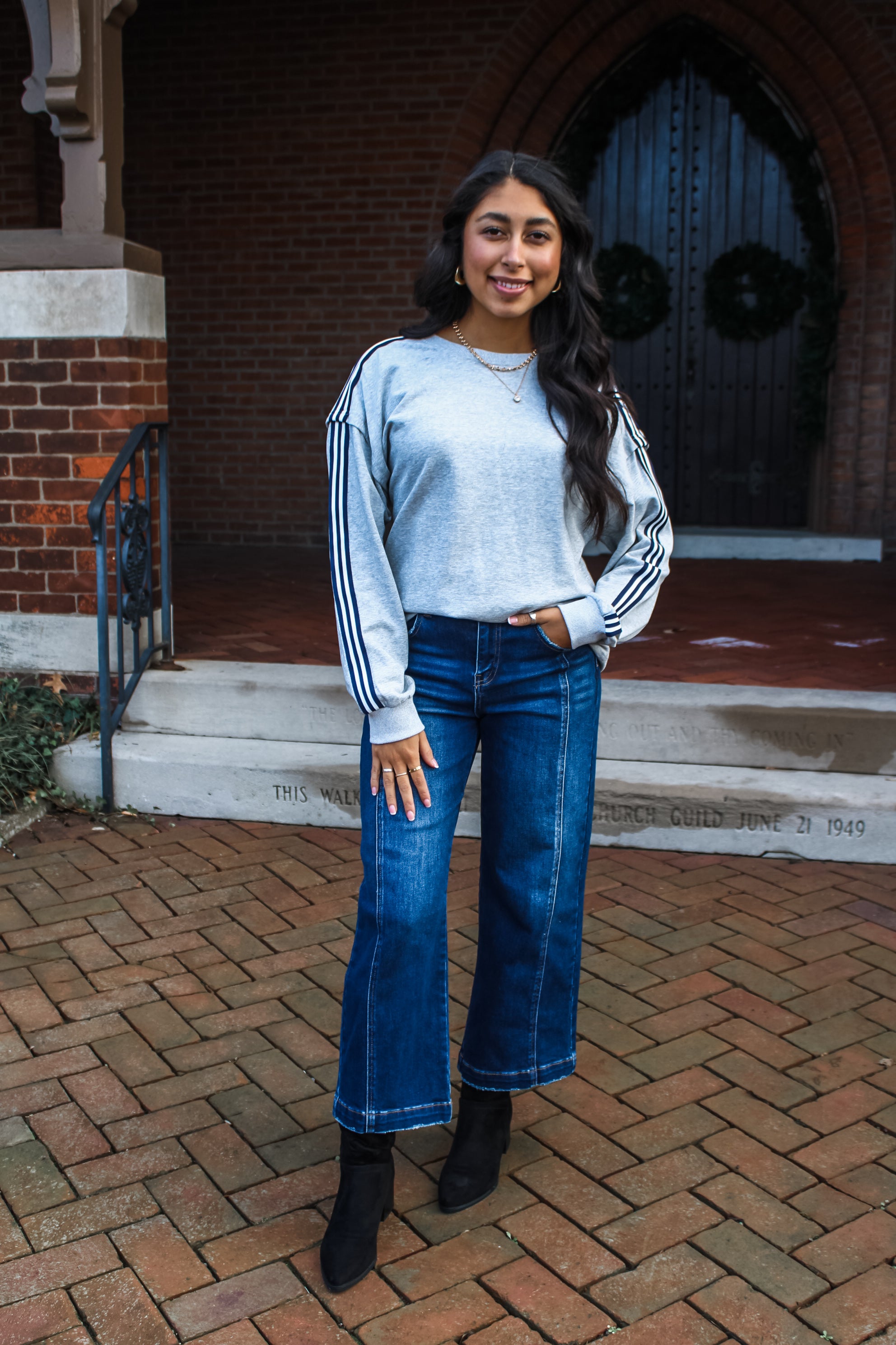 Striking essentials for a cool and comfy holiday style! Crafted from a soft terry knit, this pullover is an effortless throw-on-and-go look for any day of the week. Featuring a classic crewneck, relaxed silhouette and side stripe detailing for contrast and a trendy retro-inspired vibe.