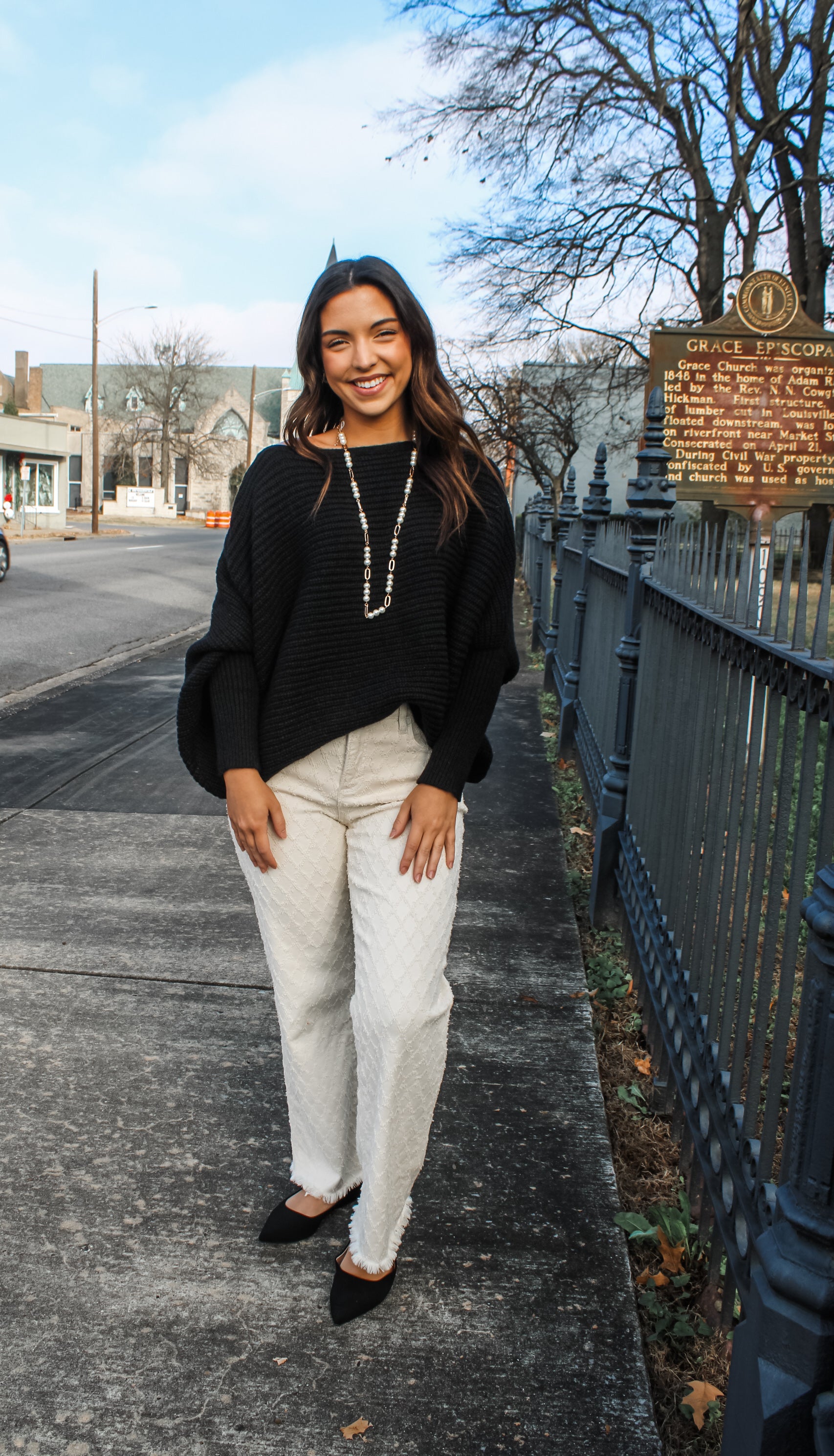 Cozy and chic, this sweater is a stylish refresh for work or play. Crafted in a braided rib knit with a wide neckline, stylized dolman sleeves and a slouchy silhouette. It’s an elevated and versatile look you can dress up or down season after season.
