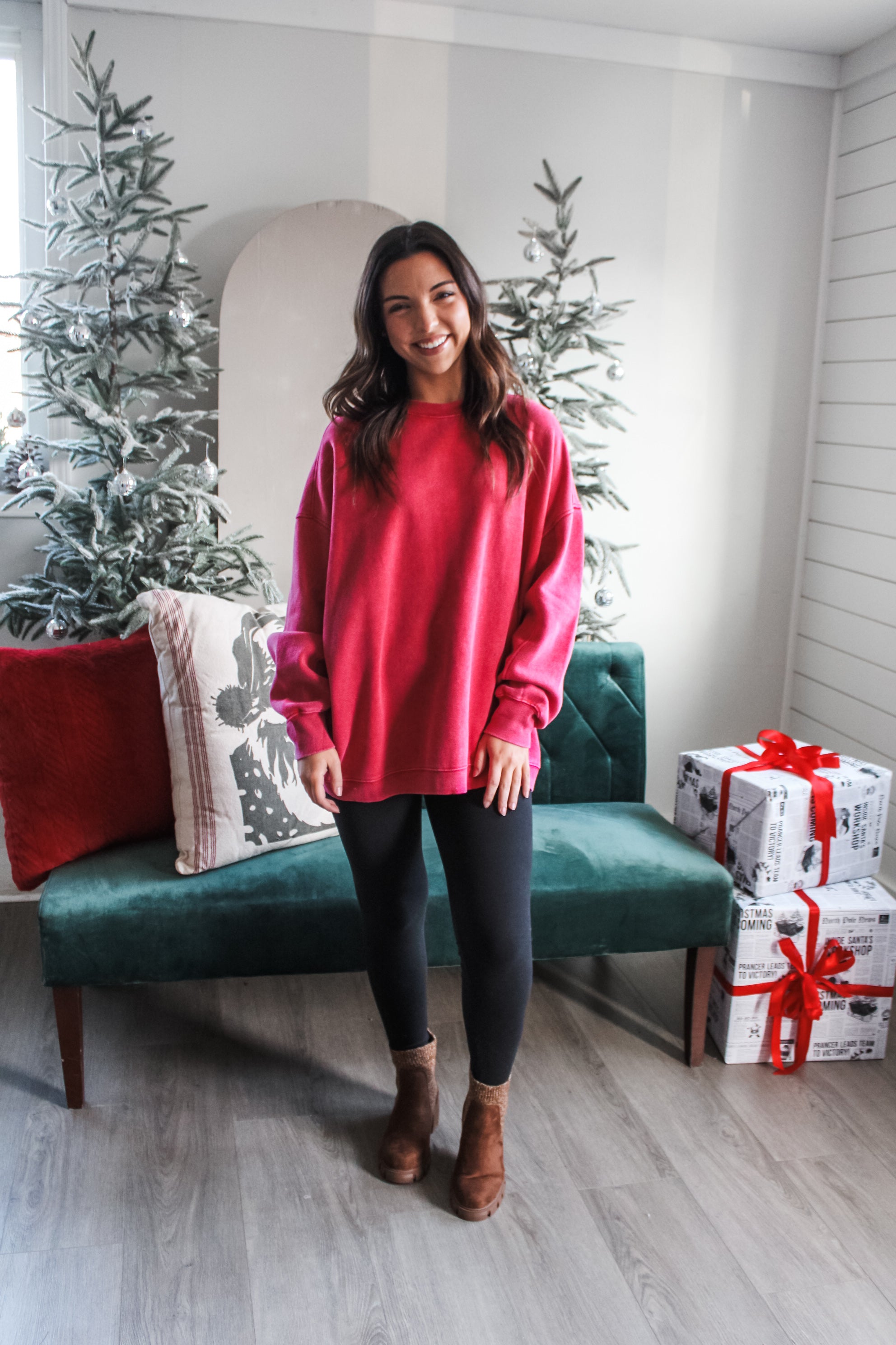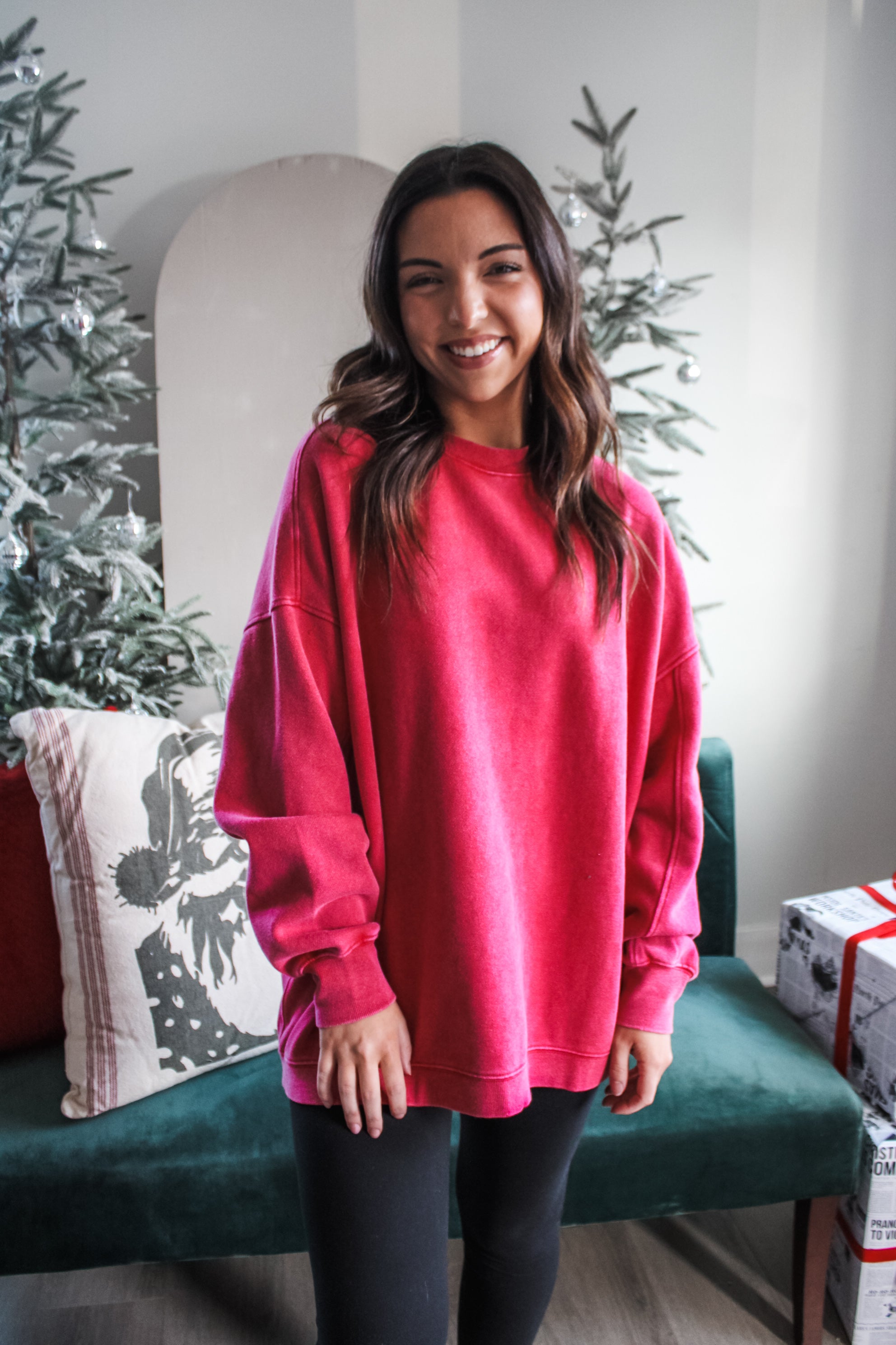 So cool and cozy, this pullover will be your new wardrobe favorite! This easy and essential top is featured in an oversized silhouette for the comfiest fit, with a longer hem length that’s perfect for tossing over leggings. The mineral washed fleece fabrication provides a layer of warmth without the bulk, while the classic crewneck and rib band finishing make it a timeless staple you’ll keep reaching for.