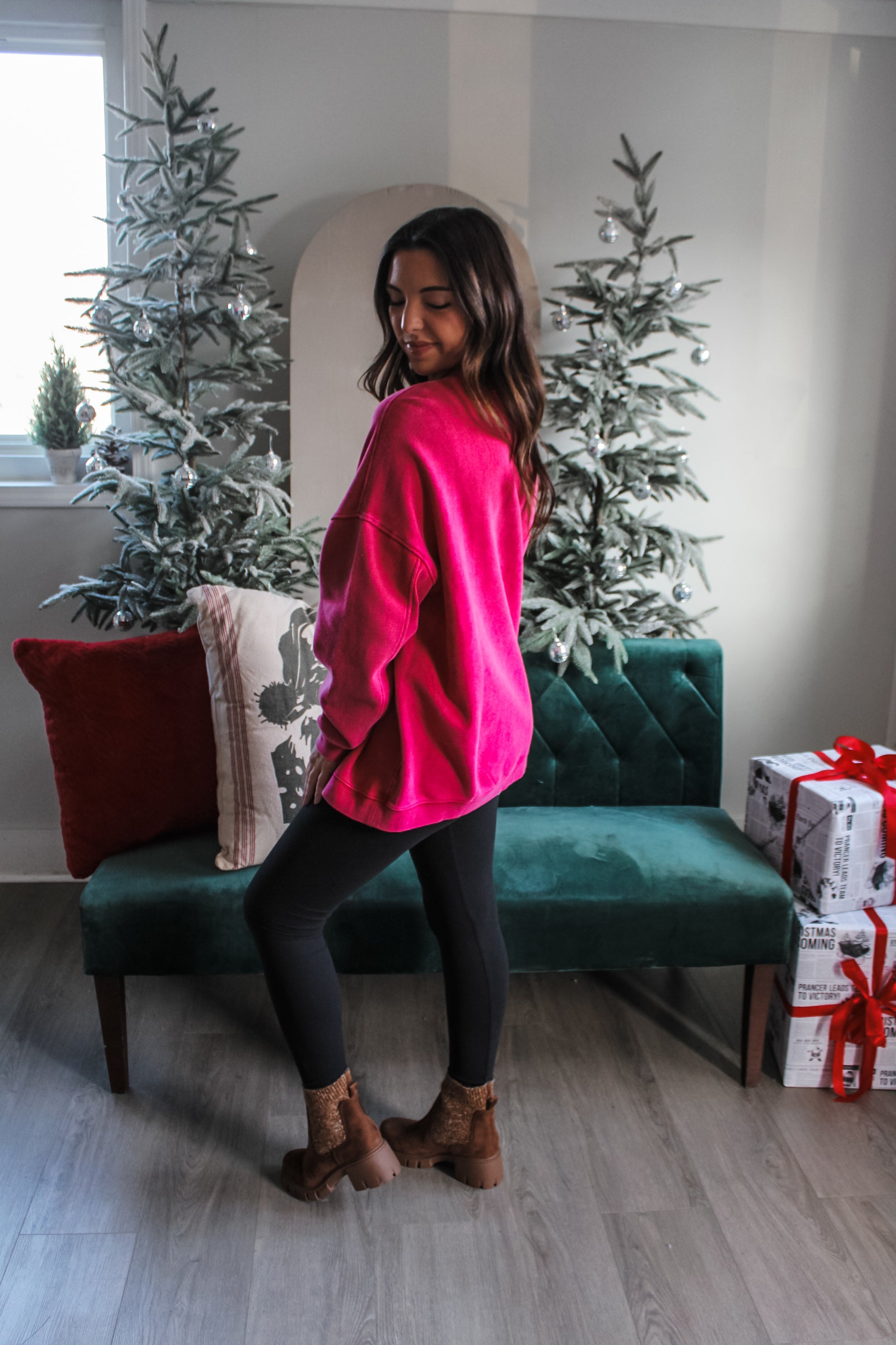 Styling tips: Pair with straight leg jeans and ankle boots for winter outings, toss over leggings and sneakers for gamedays, or wear with lounge pants and clog slippers for chilling at home.