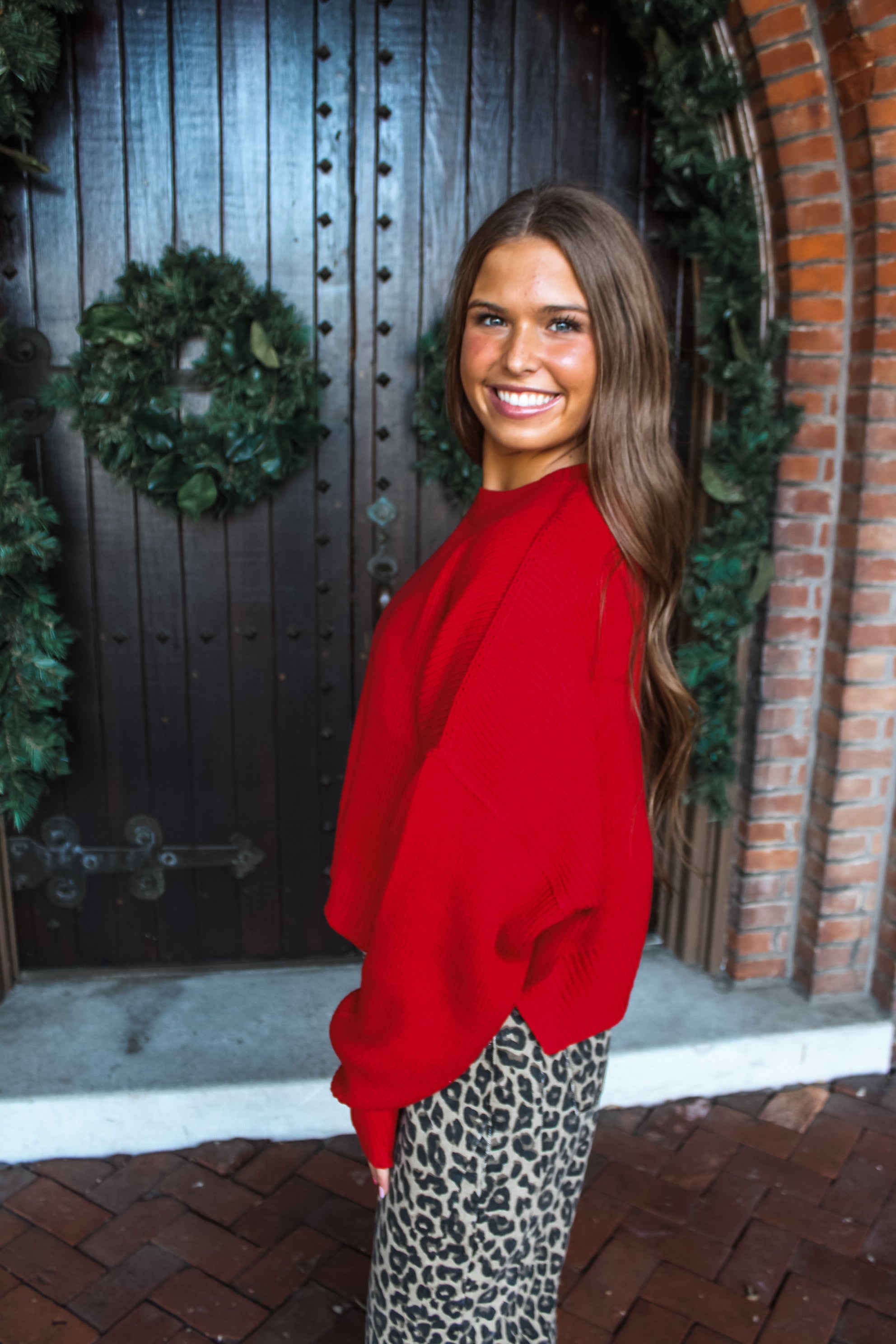 Size + fit: Loose fit for style. S 0-6, M 6-10, L 10-12. 100% Acrylic. Model is 5’3” and wears a Small.