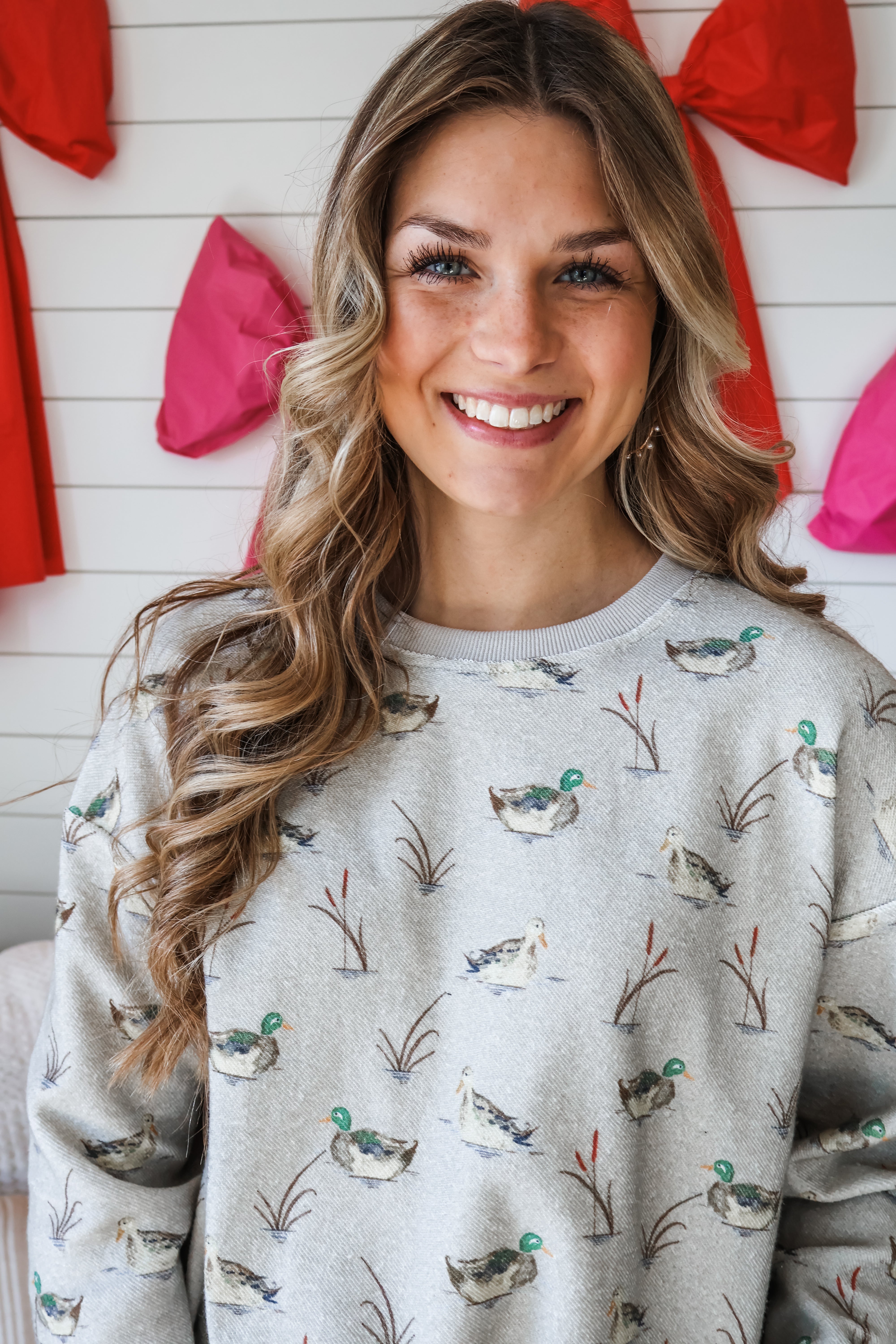 Step into spring with a playful print! With a mallard-inspired motif that’s so on-trend, this pullover will add charm and character to your everyday style! Crafted from a soft terry knit with a crew neckline, drop shoulder sleeves and a breezy silhouette.