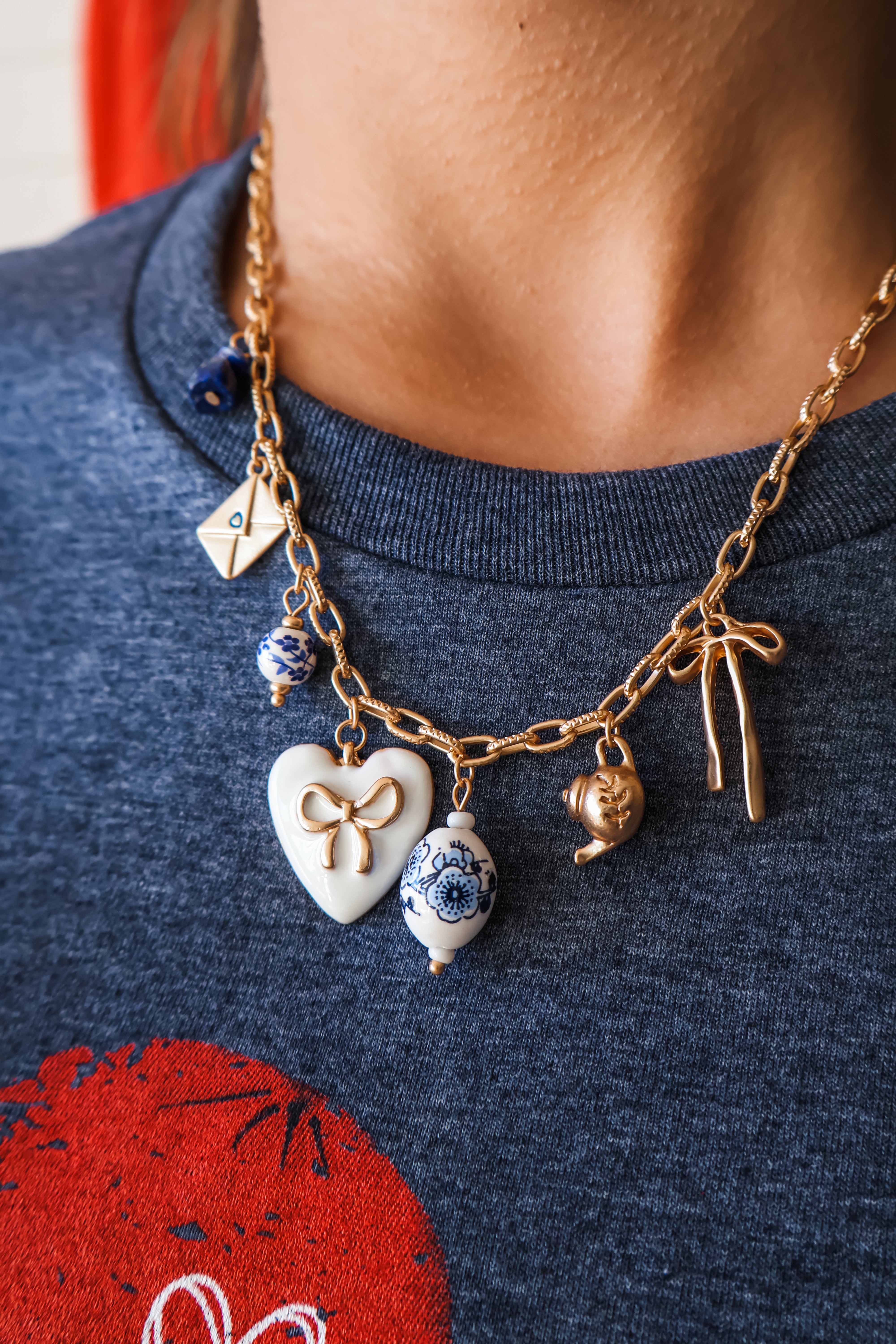 Add more polish and personality to any outfit with this pretty multi-charm necklace! Materials may have natural variations. Colors may vary from different viewing devices and lighting. Final sale item.