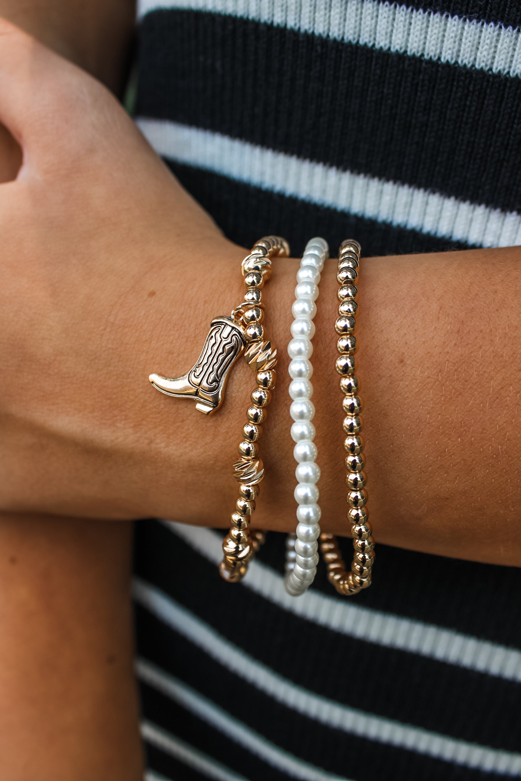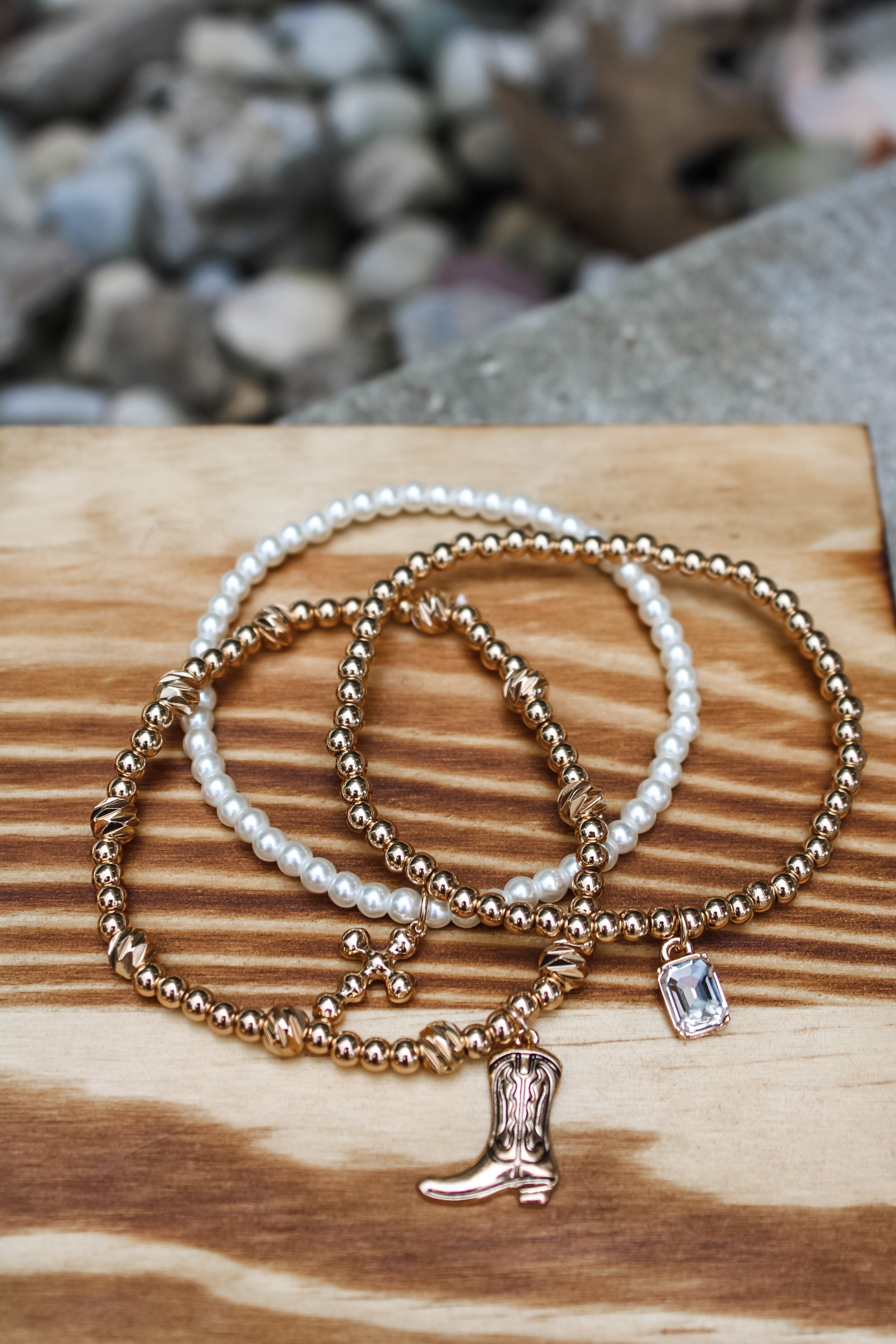 Polished and playful accessories to elevate your style! Worn individually, layered with other pieces, or stacked together, this 3-piece bracelet set will add a touch of cowgirl cool to any outfit!