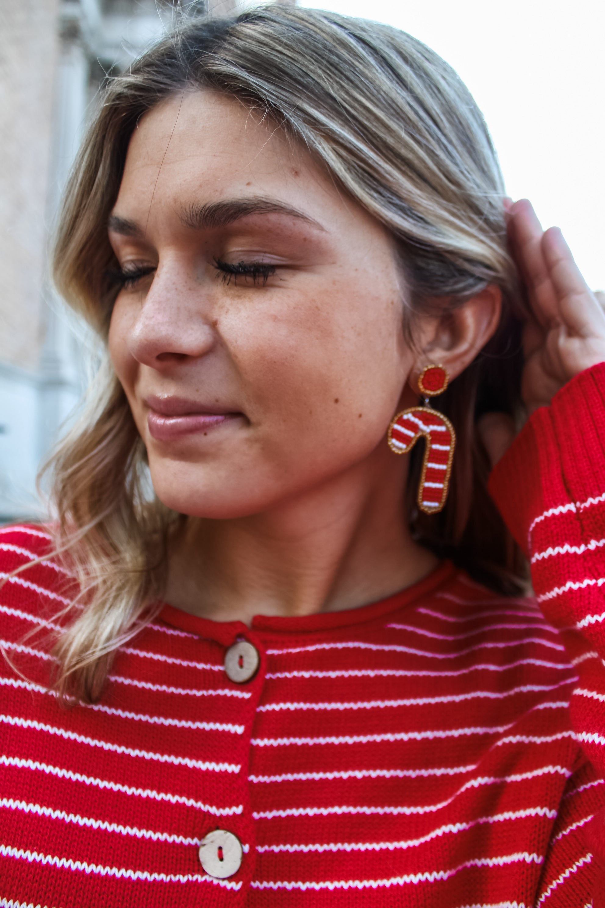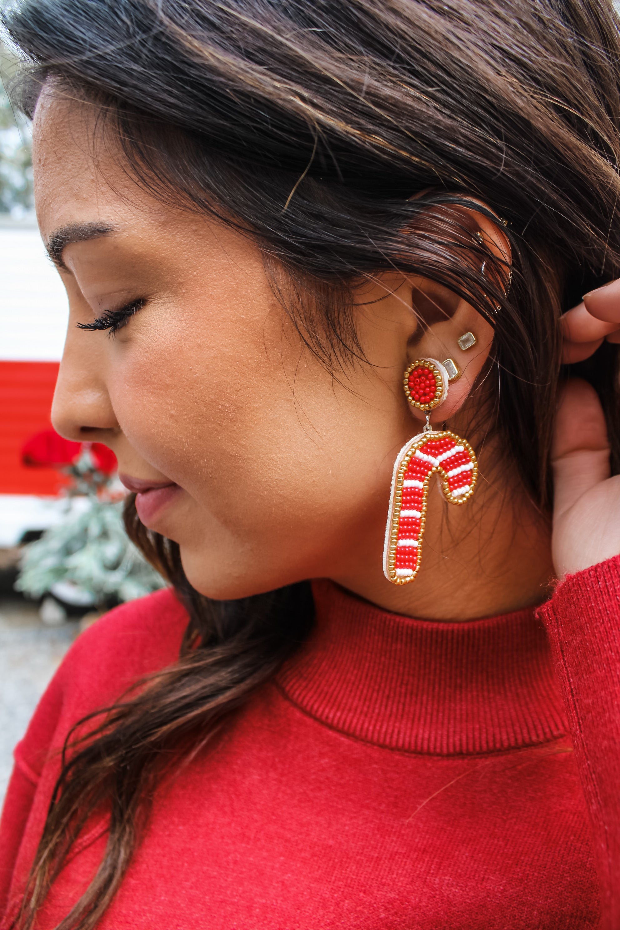 Have a sparkly and bright holiday style with the cutest accessories! These earrings will add a festive flair to any outfit with its beaded design and rhinestone gems. Materials may have natural variations. Colors may vary from different viewing devices and lighting. Final sale item.