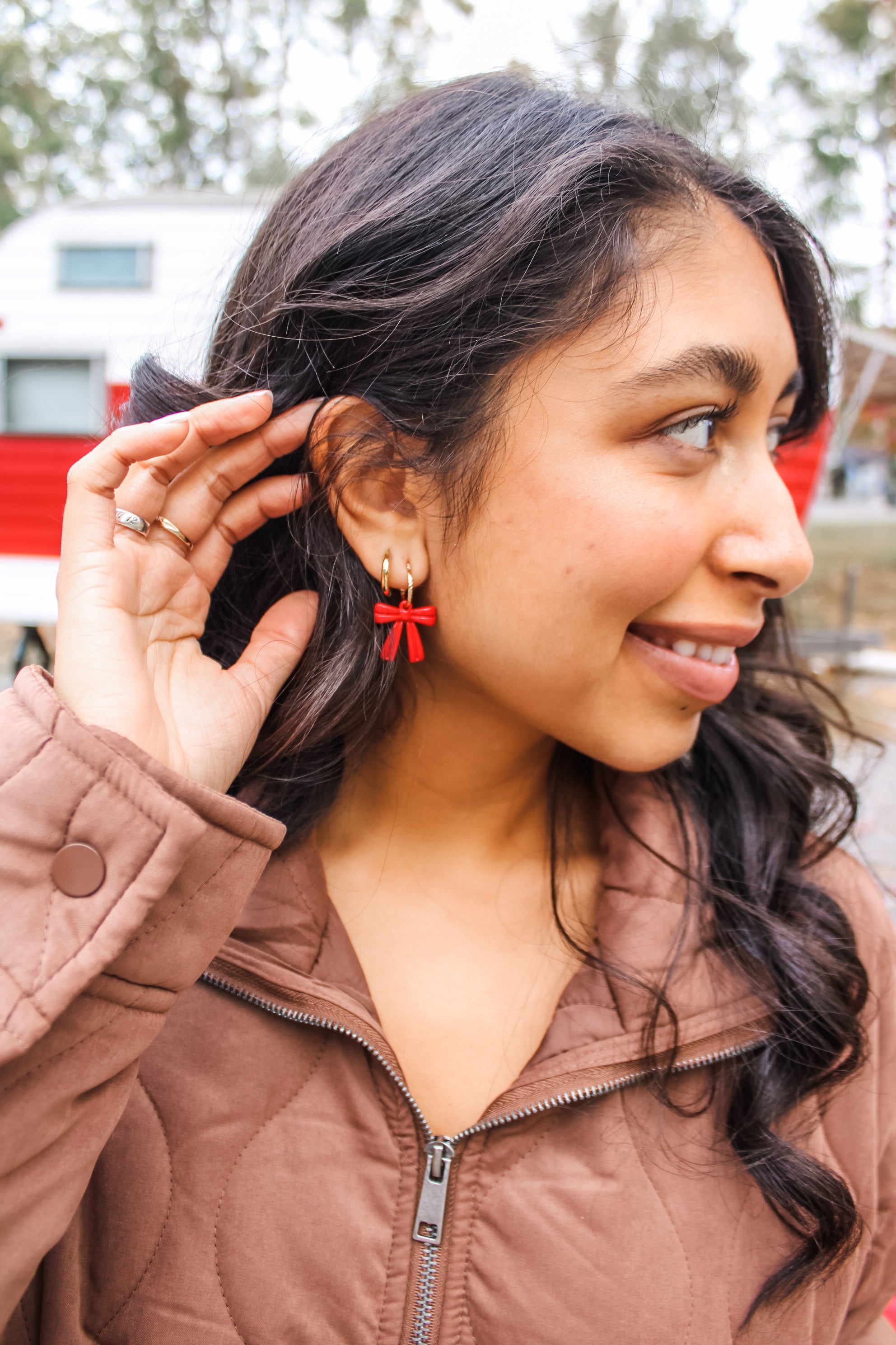 So sweet and trendy, these bow earrings are the perfect finishing touch for your holiday looks! Materials may have natural variations. Colors may vary from different viewing devices and lighting. Final sale item.
