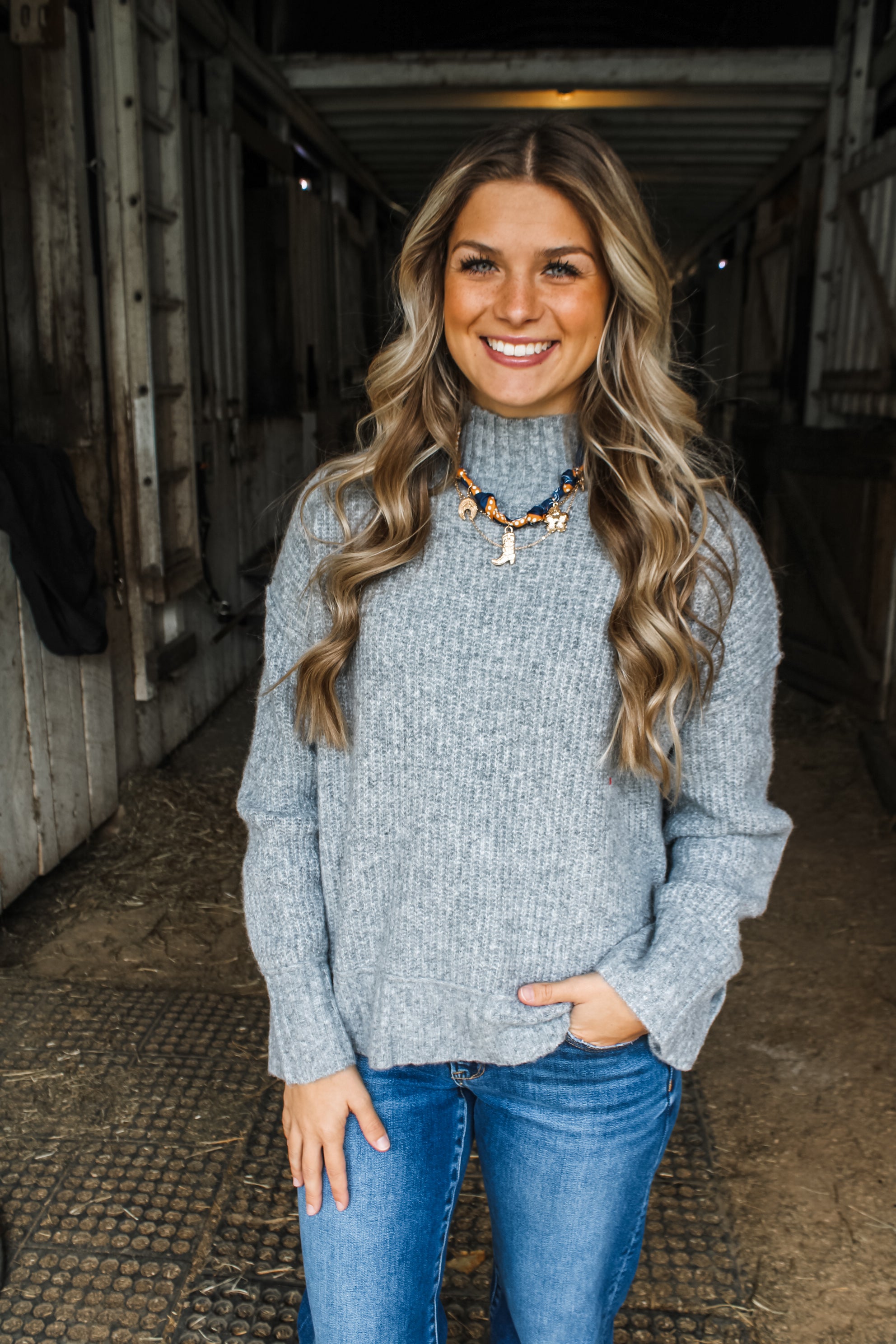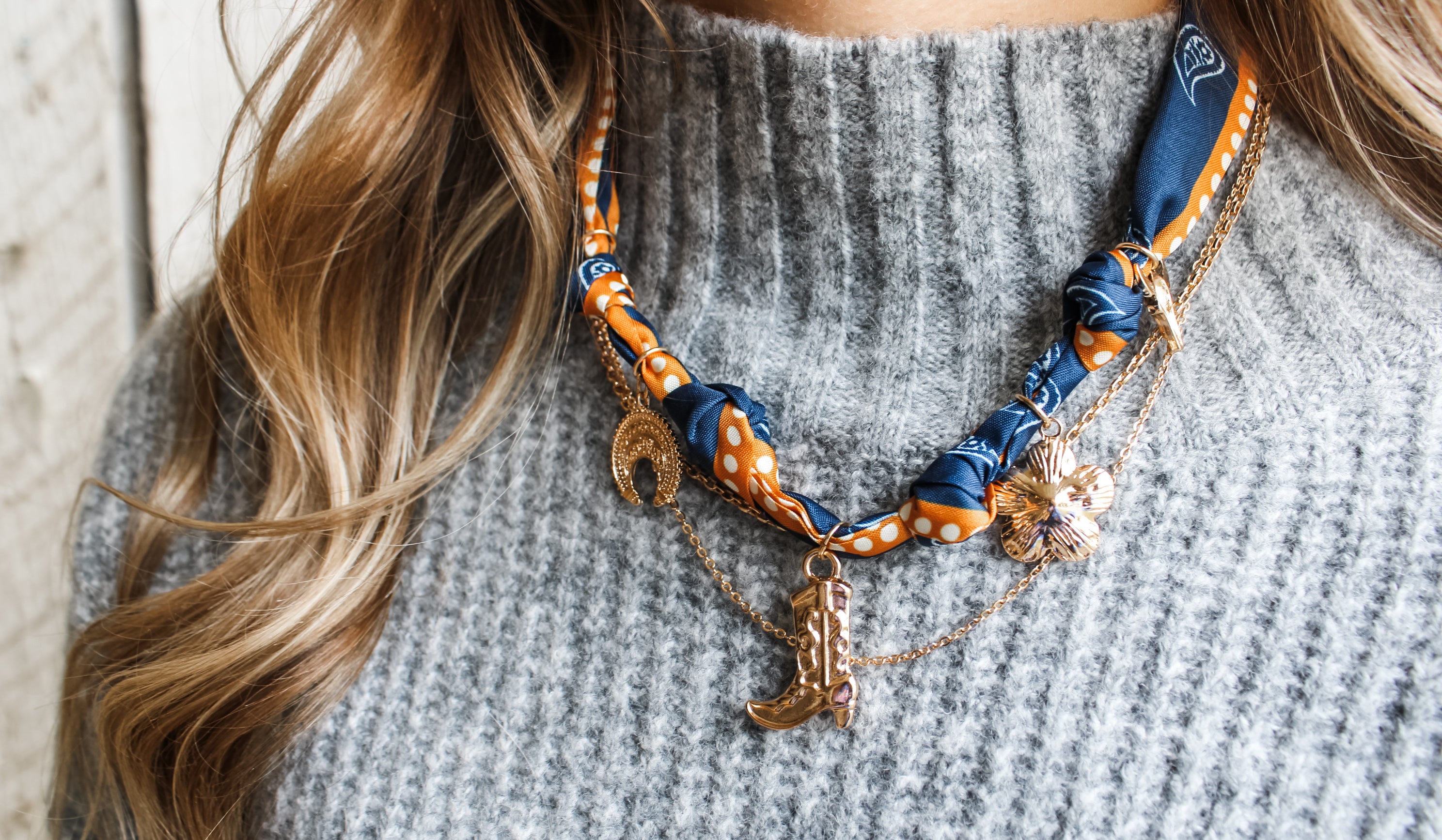 Country Girl Charm Scarf Necklace • Navy Multi