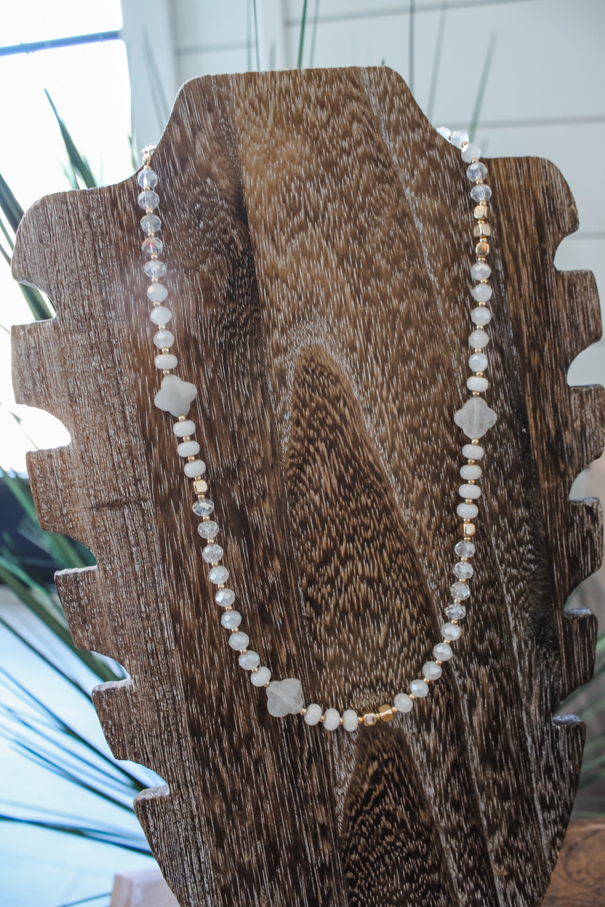 So cute and charming, this necklace will add a sophisticated sparkle to any look. Featuring multicolor faceted beads, polished stone beads and clover charm accents with a lobster clasp closure.