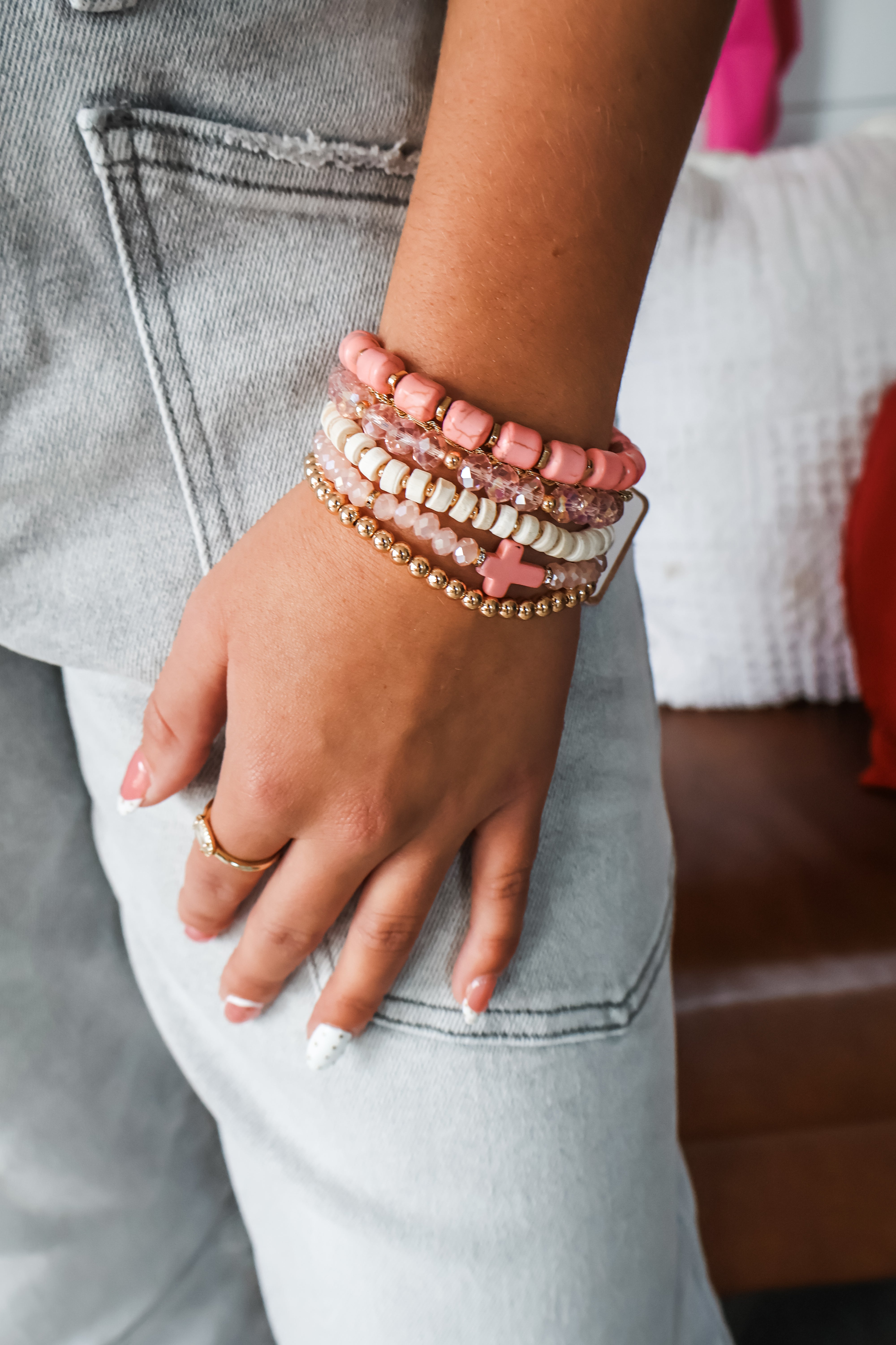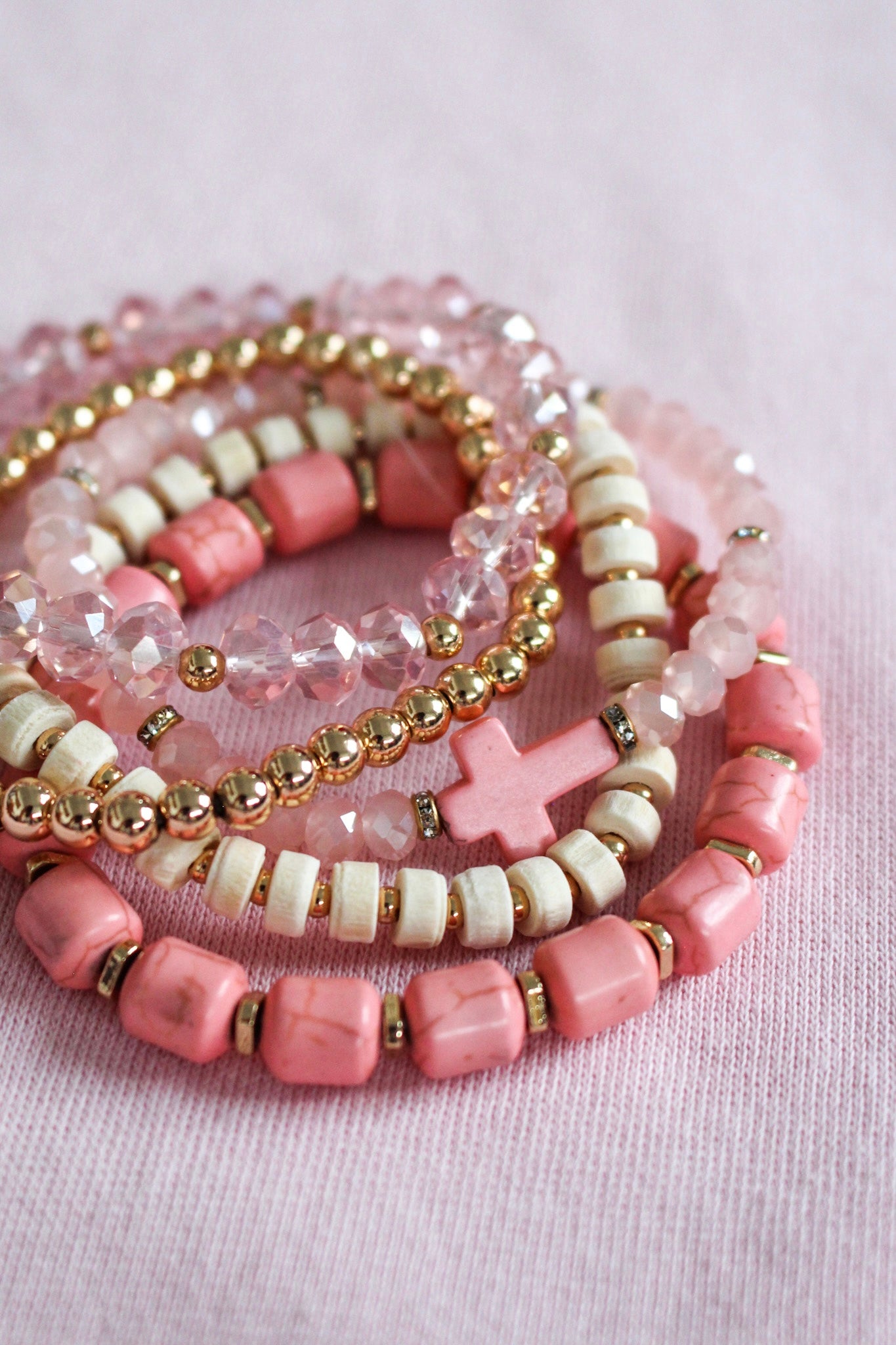 Love is in the air and this beaded bracelet will add a touch of color and sparkle to any look! Materials may have natural variations. Colors may vary from different viewing devices and lighting. Final sale item.
