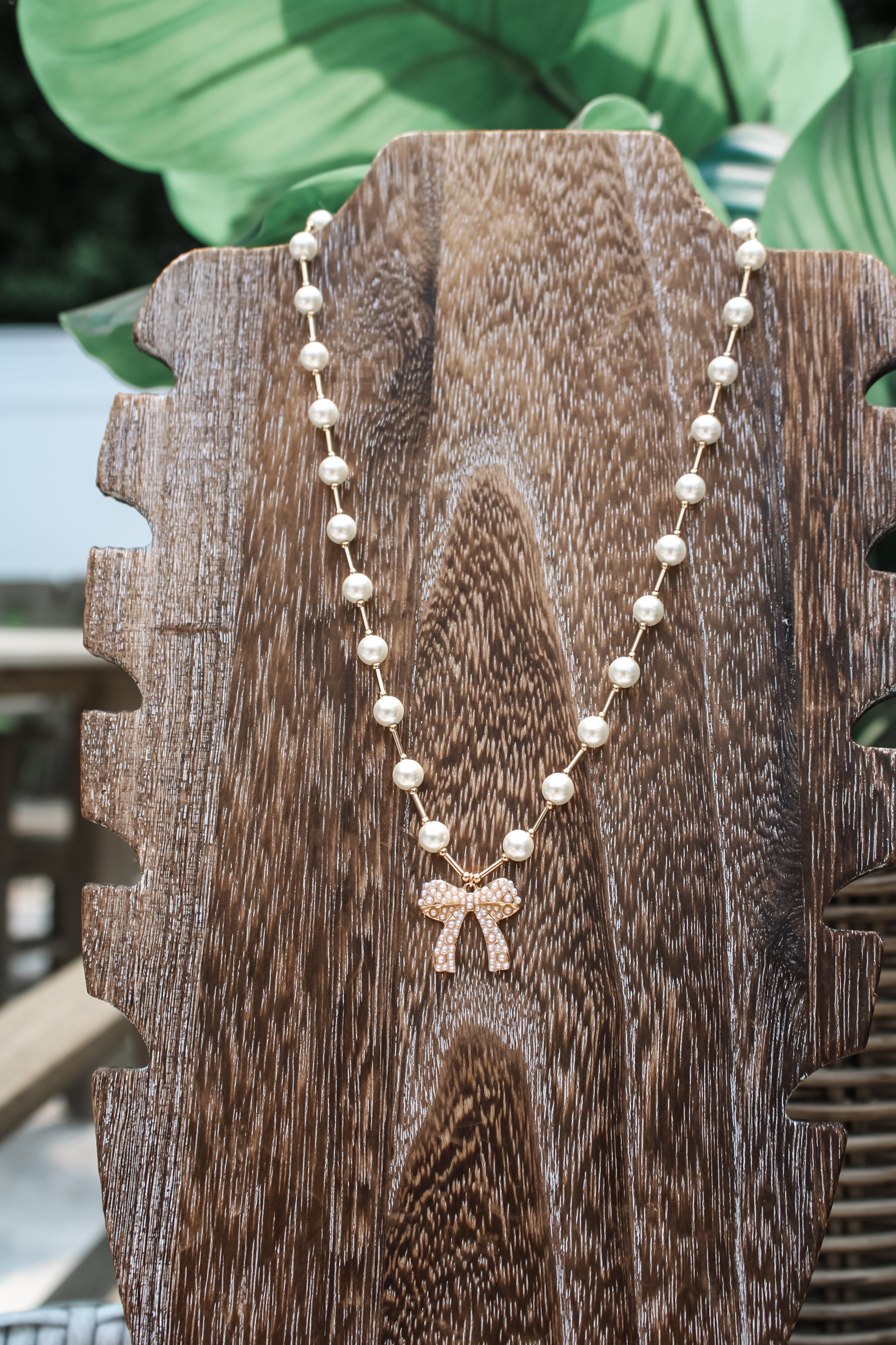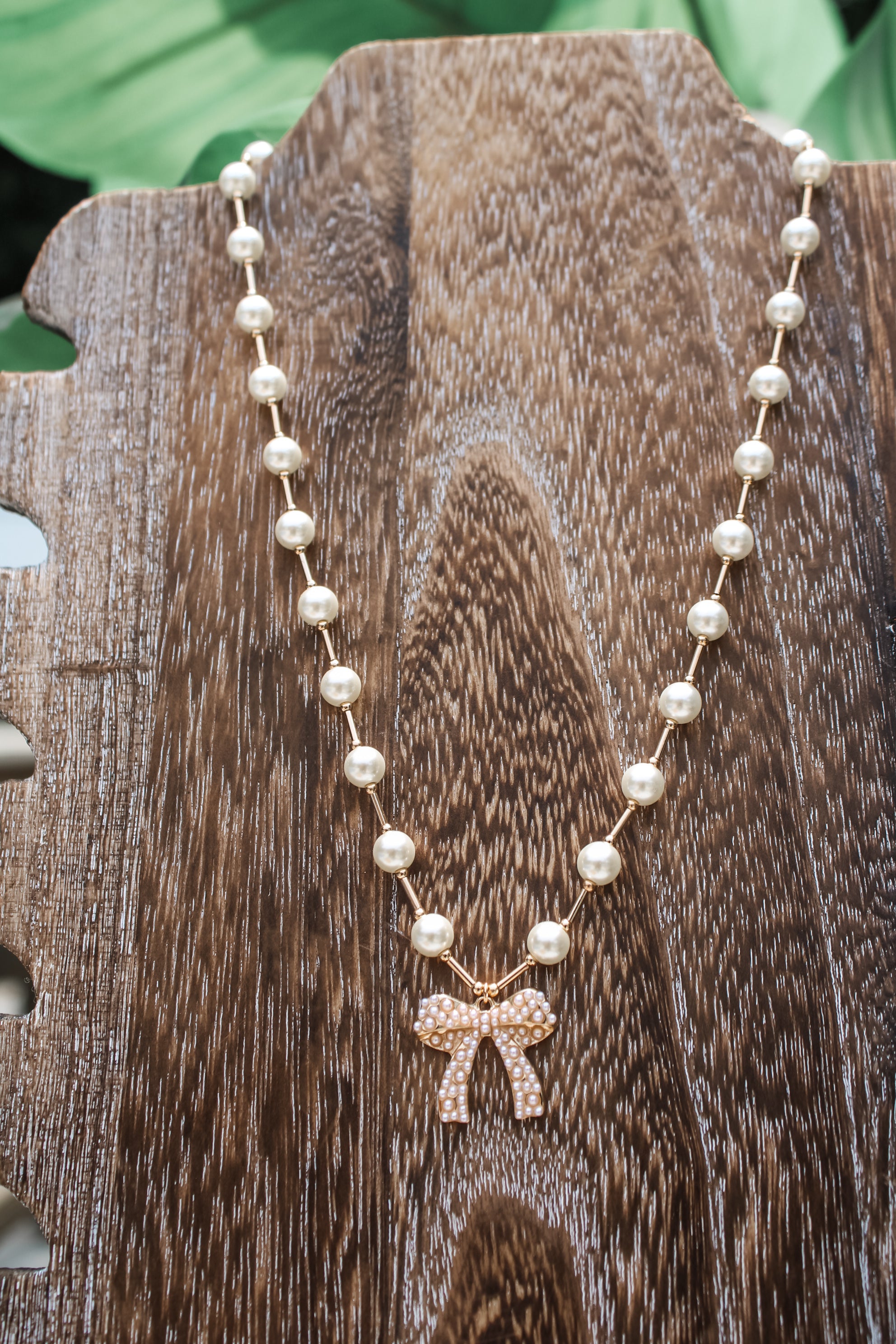 Fancy Feeling Bow Necklace • Pearl/Gold
