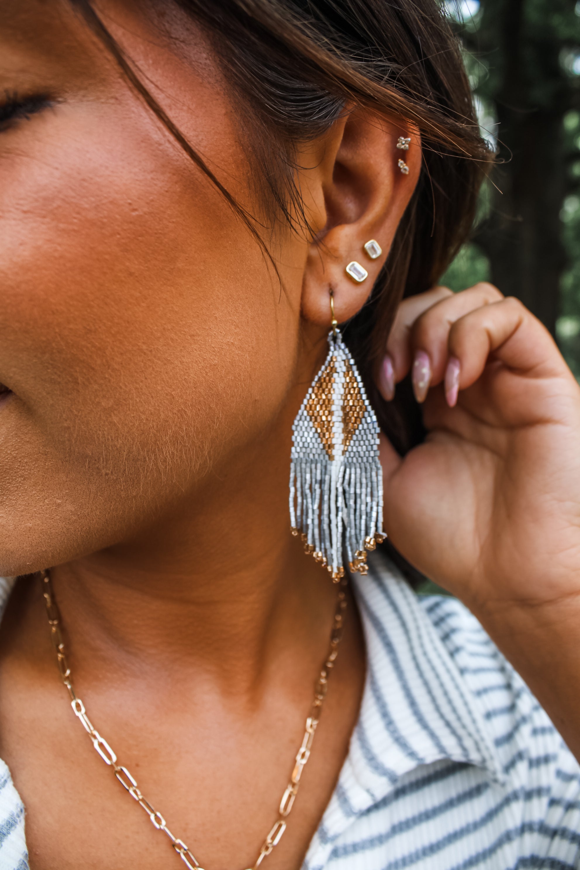 Fringed and flirty, these beaded tassel earrings will add a fun statement to any look! Such a cute style to pair with summer dresses and cowboy boots for nights out on the town!