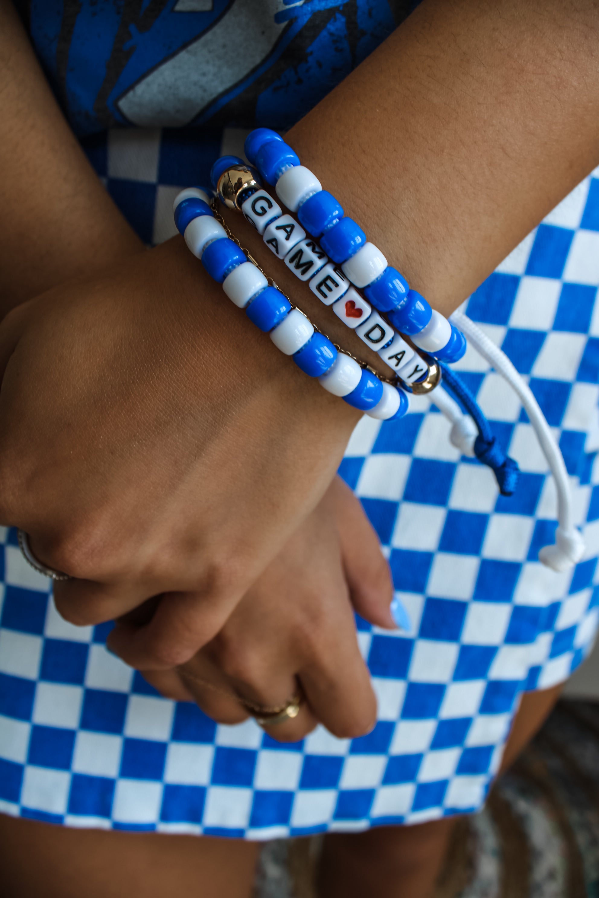 Get gameday ready with the cutest accessories! This cord bracelet features letter bead charms and a knot closure for a custom fit. Materials may have natural variations. Colors may vary from different viewing devices and lighting. Final sale item.