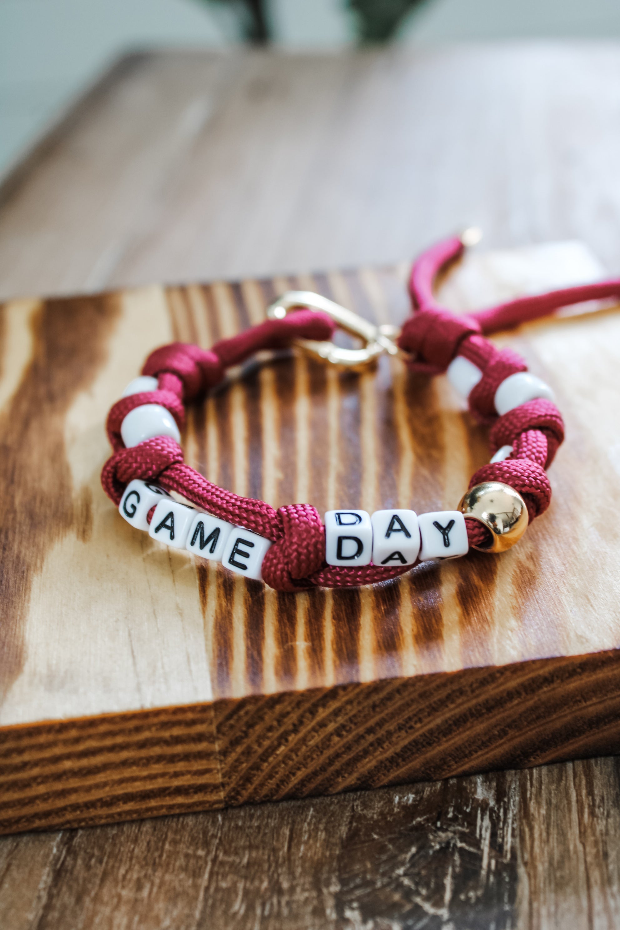 Get gameday ready with the cutest accessories! This knotted cord bracelet features letter bead charms and a carabiner clasp closure. Materials may have natural variations. Colors may vary from different viewing devices and lighting. Final sale item.