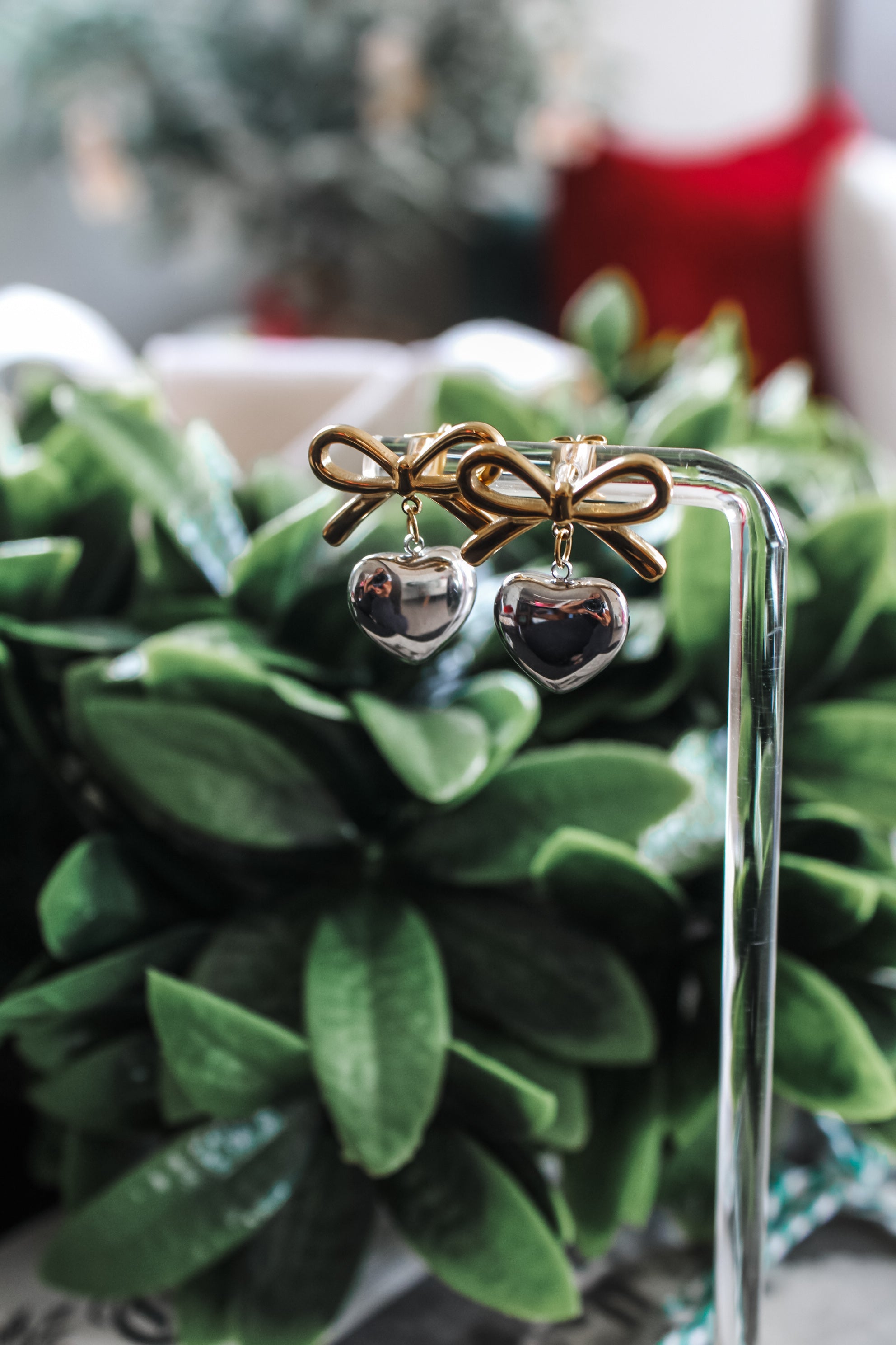 So sweet and trendy, these bow and heart earrings will add a sophisticated touch to your holiday style! Materials may have natural variations. Colors may vary from different viewing devices and lighting. Final sale item.
