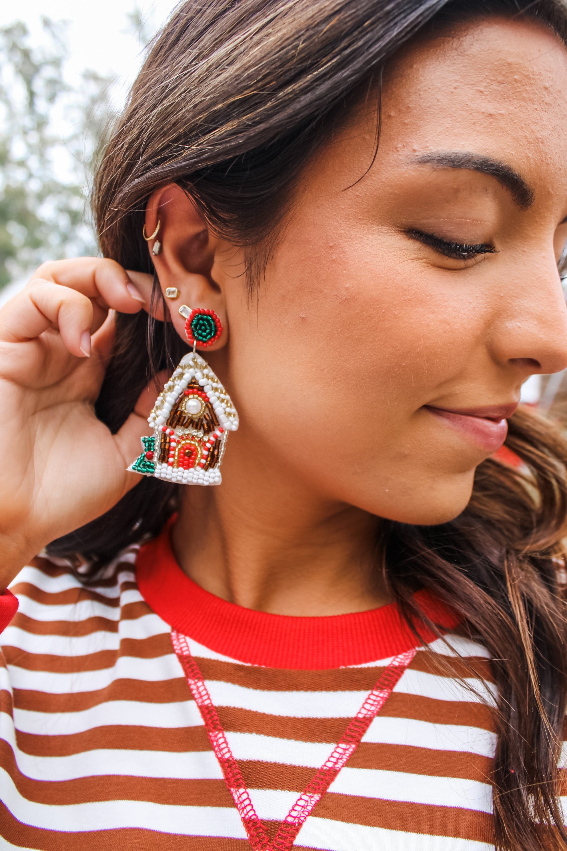 Have a merry and bright holiday style with the cutest accessories! These earrings will add a festive flair to any outfit with its beaded design and rhinestone gems. Materials may have natural variations. Colors may vary from different viewing devices and lighting. Final sale item.