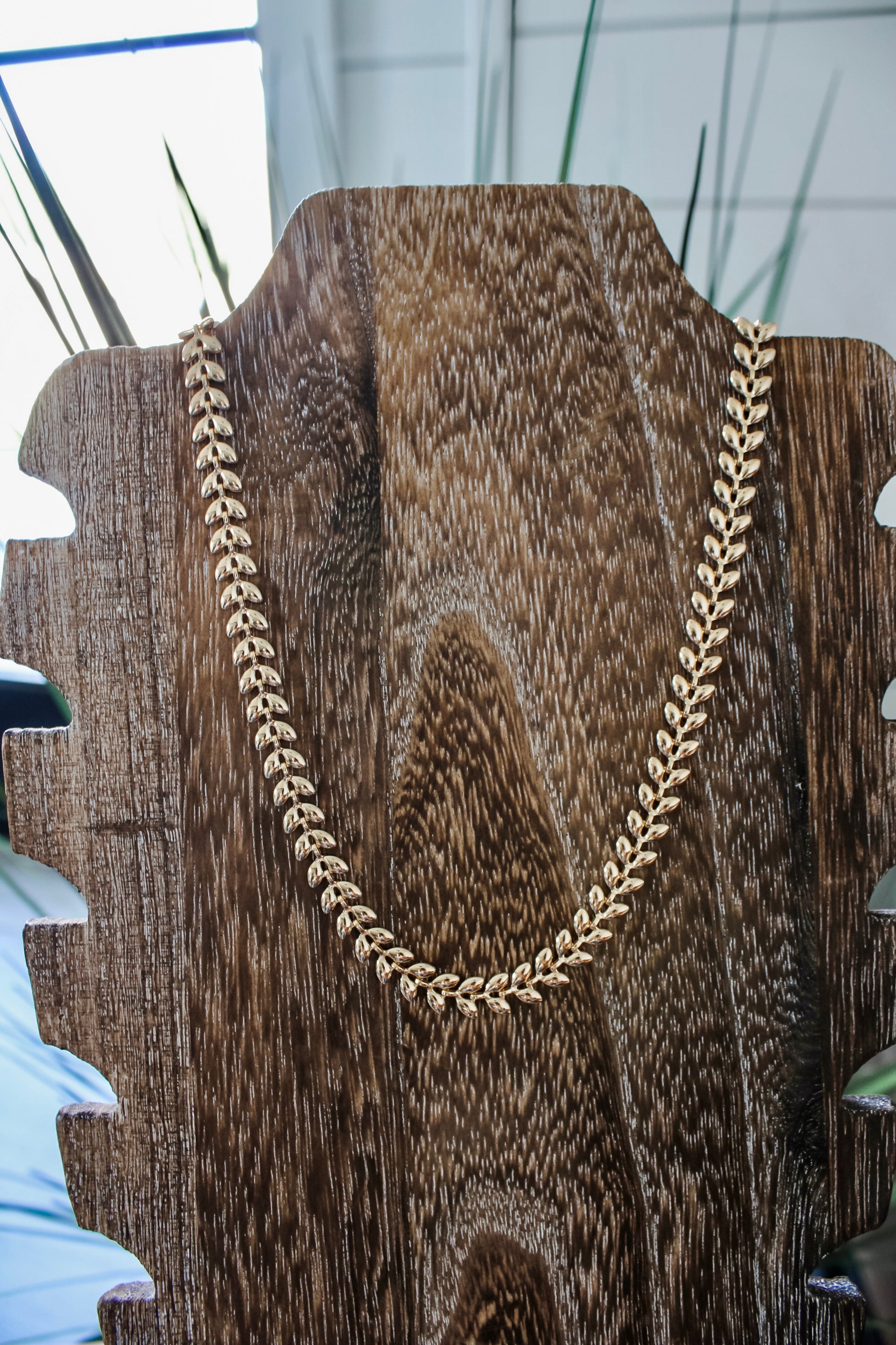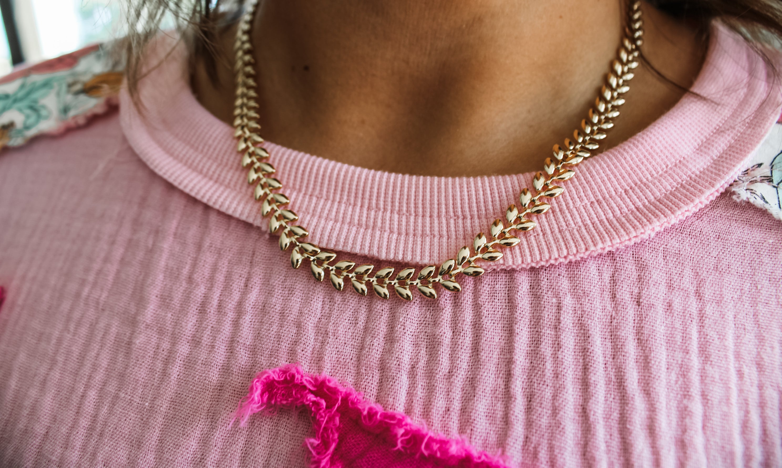 Timeless and chic, our newest jewelry collection features statement-making pieces that will elevate your everyday style. This gold necklace features a pretty leaf link chain, lobster clasp closure and 2” extender. It’s the perfect accessory to add a classy and polished touch to any look.