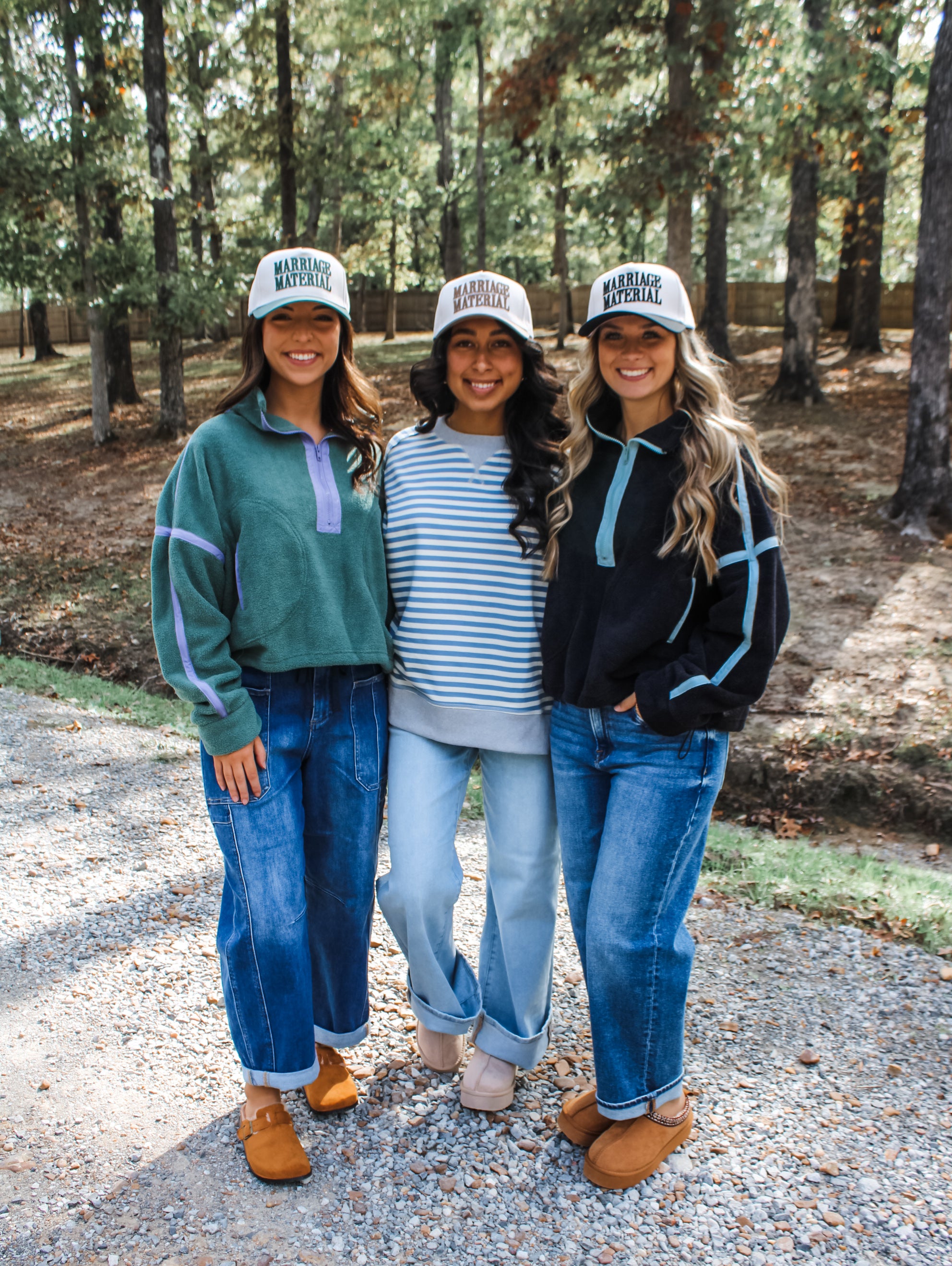 This playful trucker hat will add print and personality to your style! With an embroidered design, contrast bill and an adjustable buckle clip closure. One size. Materials may have natural variations. Colors may vary from different viewing devices and lighting.