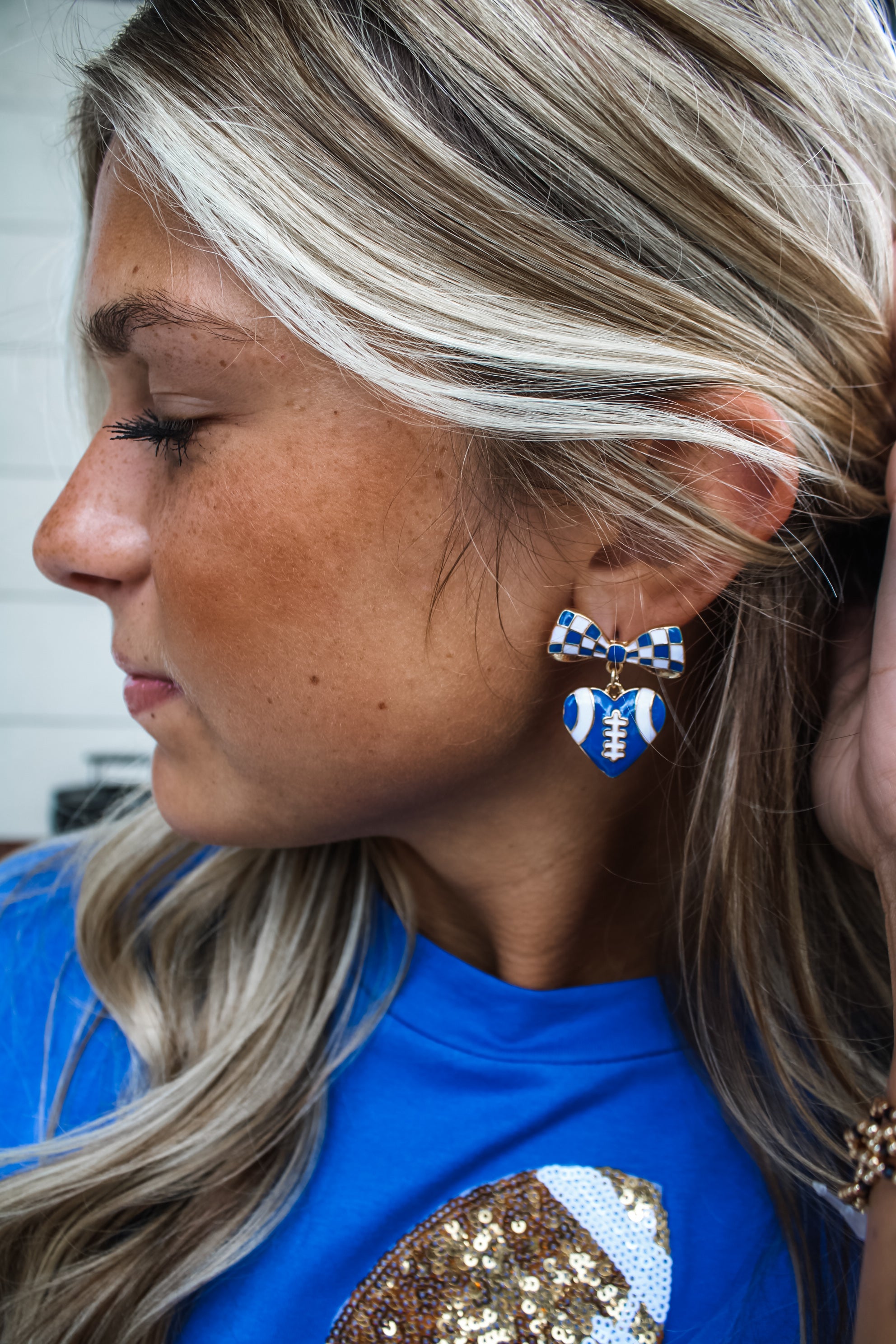 Step up your gameday looks with this chic and playful enamel drop earrings! Materials may have natural variations. Colors may vary from different viewing devices and lighting. Final sale item.