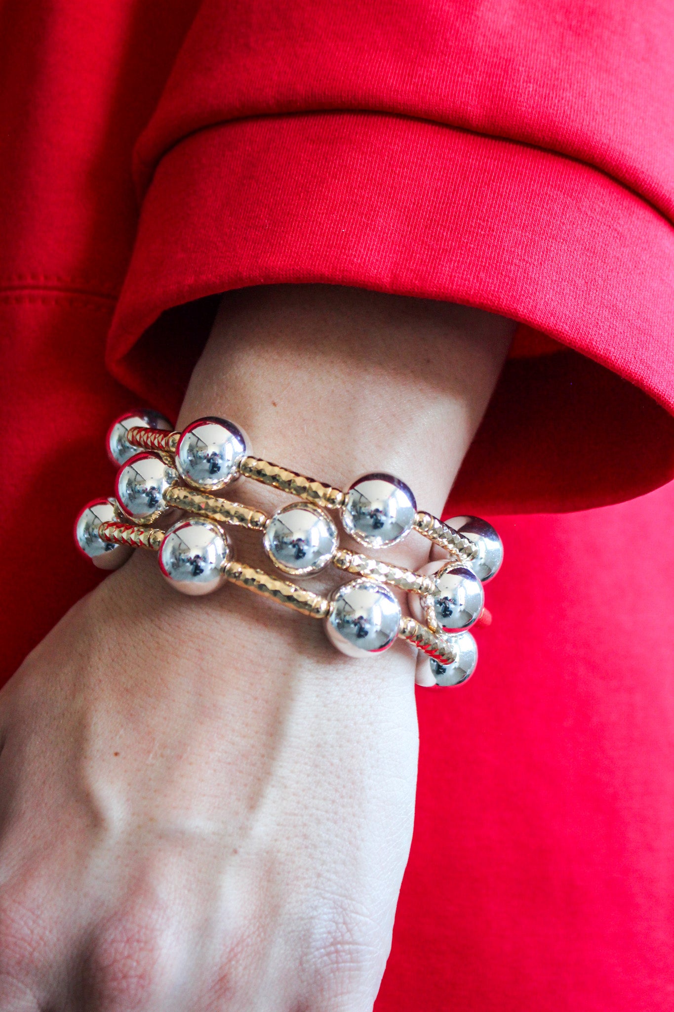 Elevate your holiday looks with sparkle and shine. Materials may have natural variations. Colors may vary from different viewing devices and lighting. Final sale item.