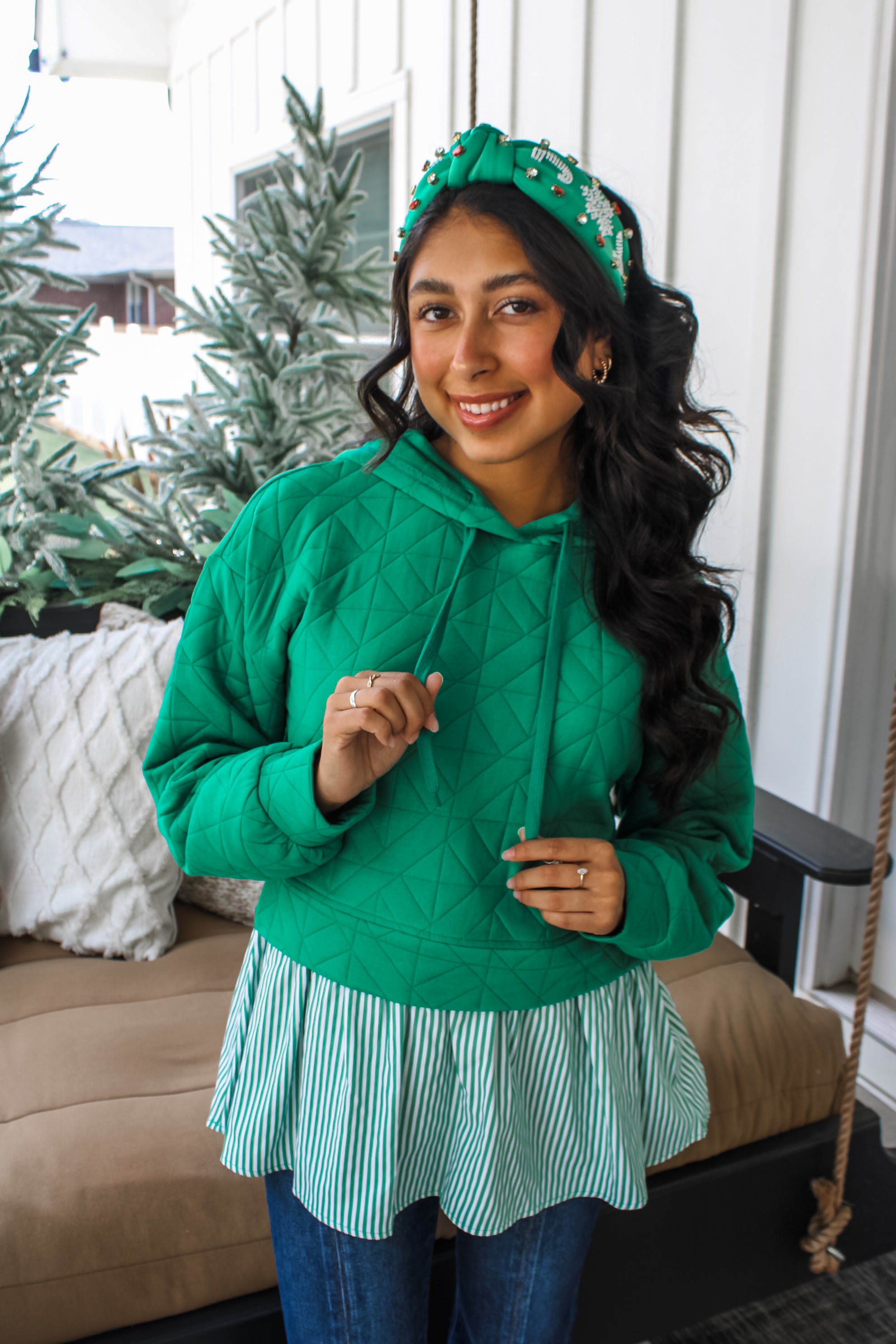 Top off your holiday looks with a fun and festive headband! Crafted from a knit fabrication, this bejeweled accessory features a top knot detail, crystal rhinestones and a beaded design.