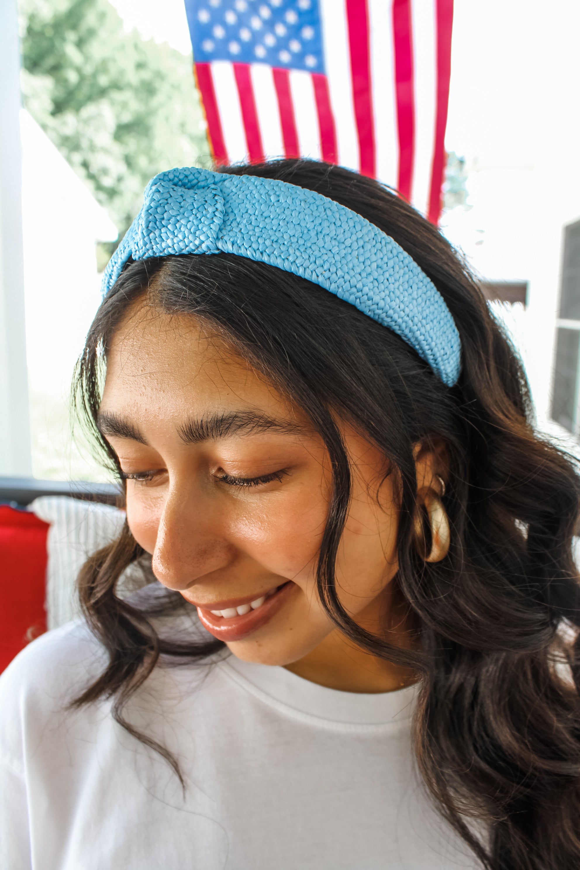 This super cute headband will complement your summer outfits! Featuring a woven raffia fabrication with a top knot detail. Materials may have natural variations. Colors may vary from different viewing devices and lighting. Final sale item.