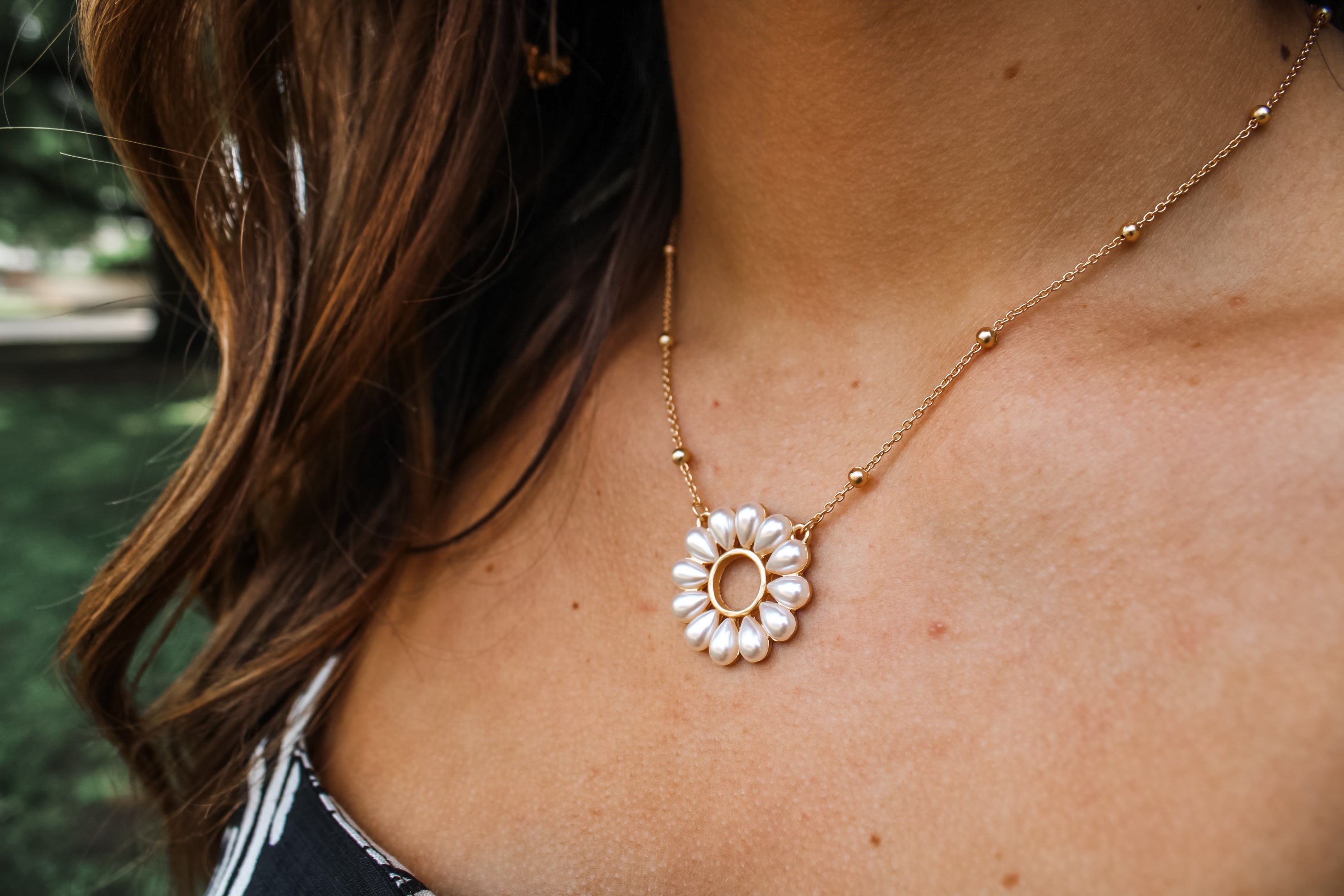 Elegantly charming, this beautiful necklace will complement any look whether you’re headed to the office, going to brunch, or having a night out! Featuring a beaded chain, pearl pendant and lobster clasp closure.