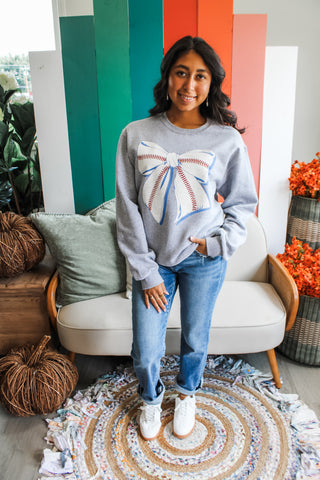 Bows & Baseball Graphic Sweatshirt • Heather Grey