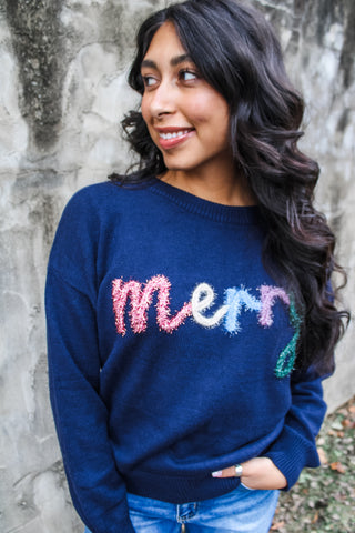 Bright & Merry Tinsel Sweater • Navy - FINAL SALE