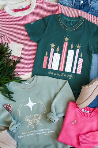 All Is Calm All Is Bright Graphic Tee • Evergreen
