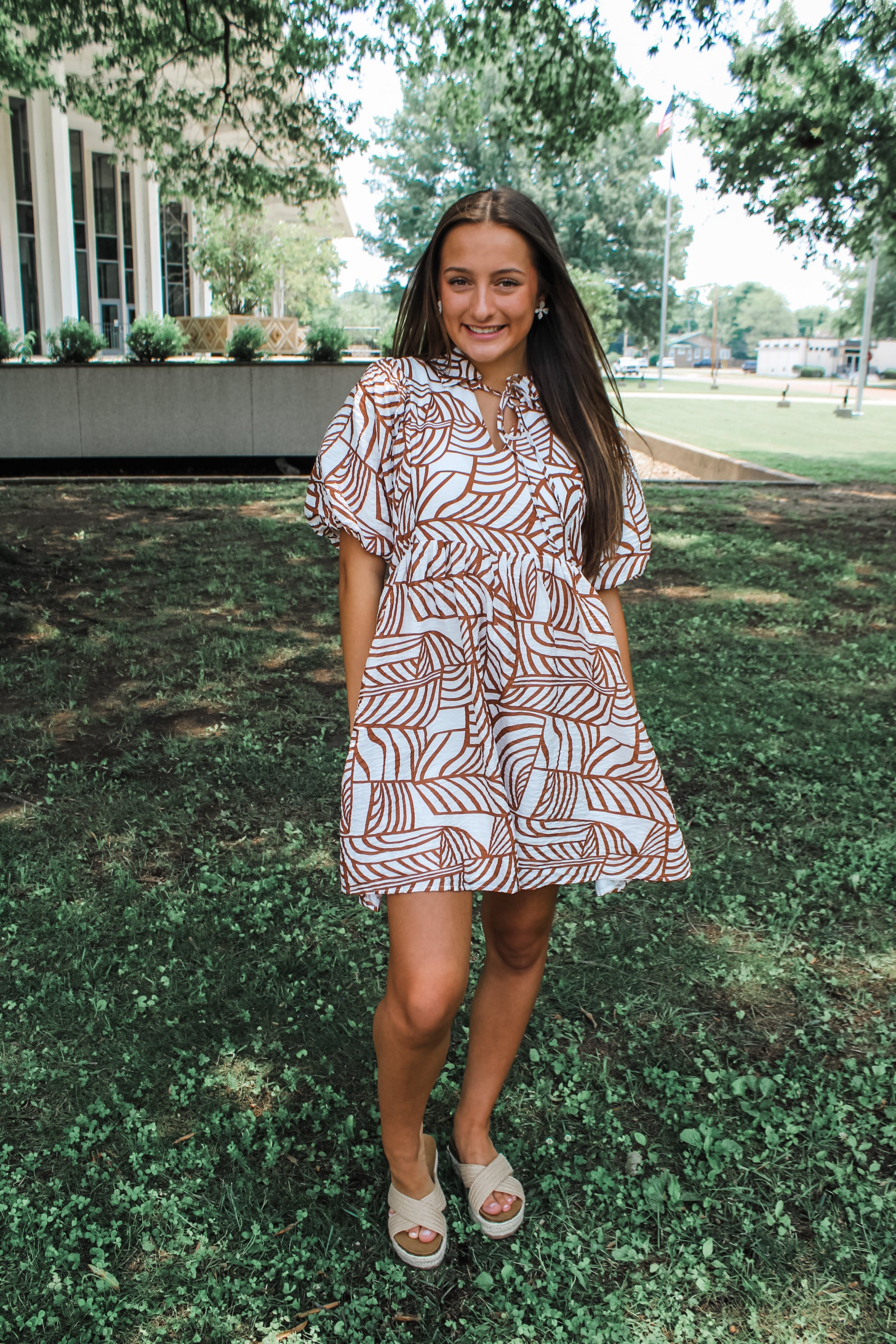 Eye-catching prints in feminine silhouettes to give you a standout summer style! Crafted in a beautifully textured woven, this pocket dress evokes striking sophistication and a polished feel. Featuring a collared neckline with a bow tie detail, puff sleeves, oh-so-essential side pockets and a flowy empire waist silhouette.