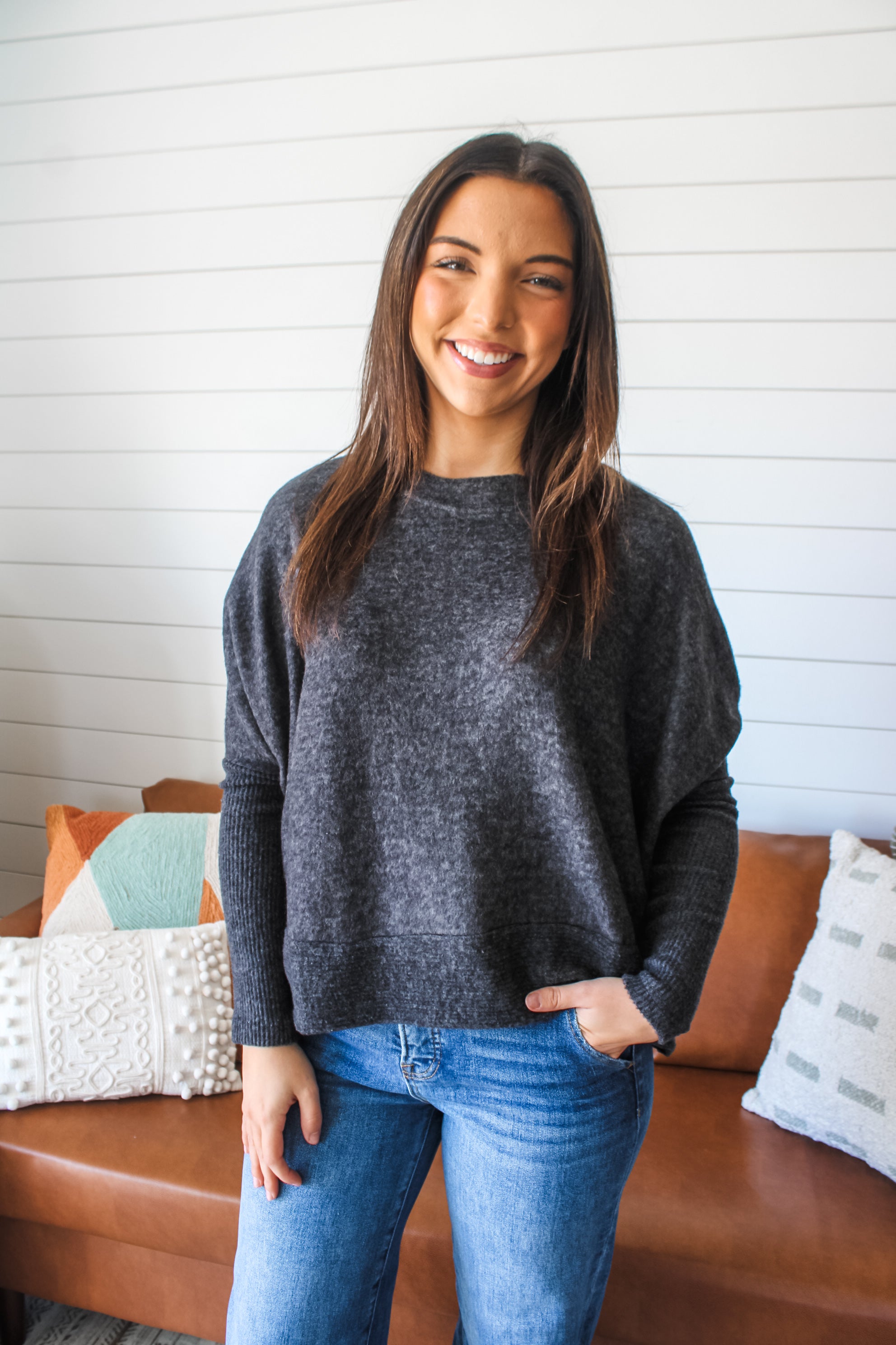 A cozy take on an effortless essential, this easy pullover is featured in a loose dolman silhouette for the comfiest fit. The heathered knit fabrication provides a cloud soft feel, while the classic crewneck and banded hem make it a timeless staple you’ll keep reaching for.