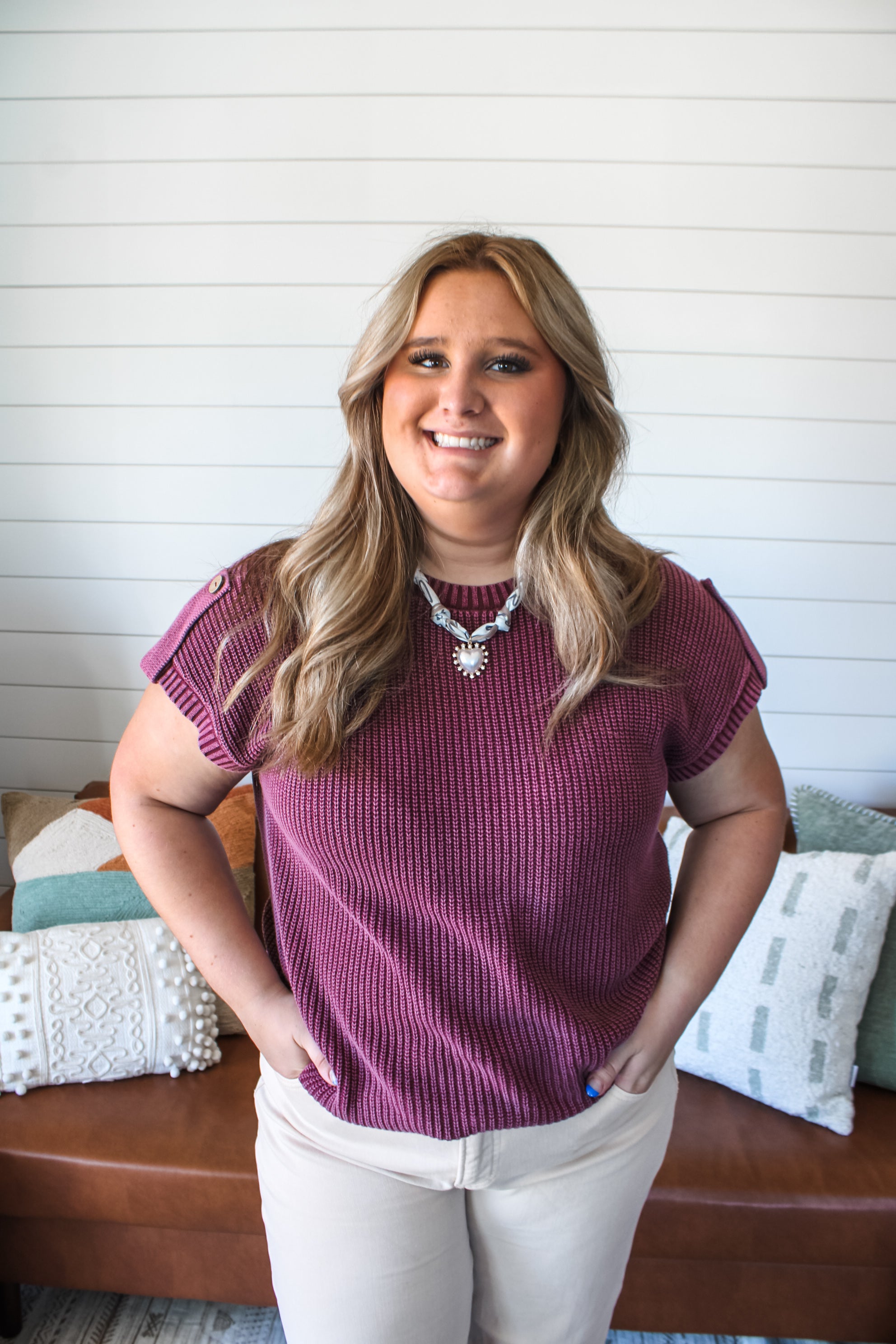 Effortless knits and beautiful jewel tones to elevate your fall style. Fabricated in a mineral wash rib knit, this sweater is a quintessential look you can dress up or down season after season. Featured in a relaxed silhouette with a crew neckline, sleeve tab and button detailing on the back. Wear on its own, or layer over mesh tops and turtlenecks, it’s a chic staple for any closet.