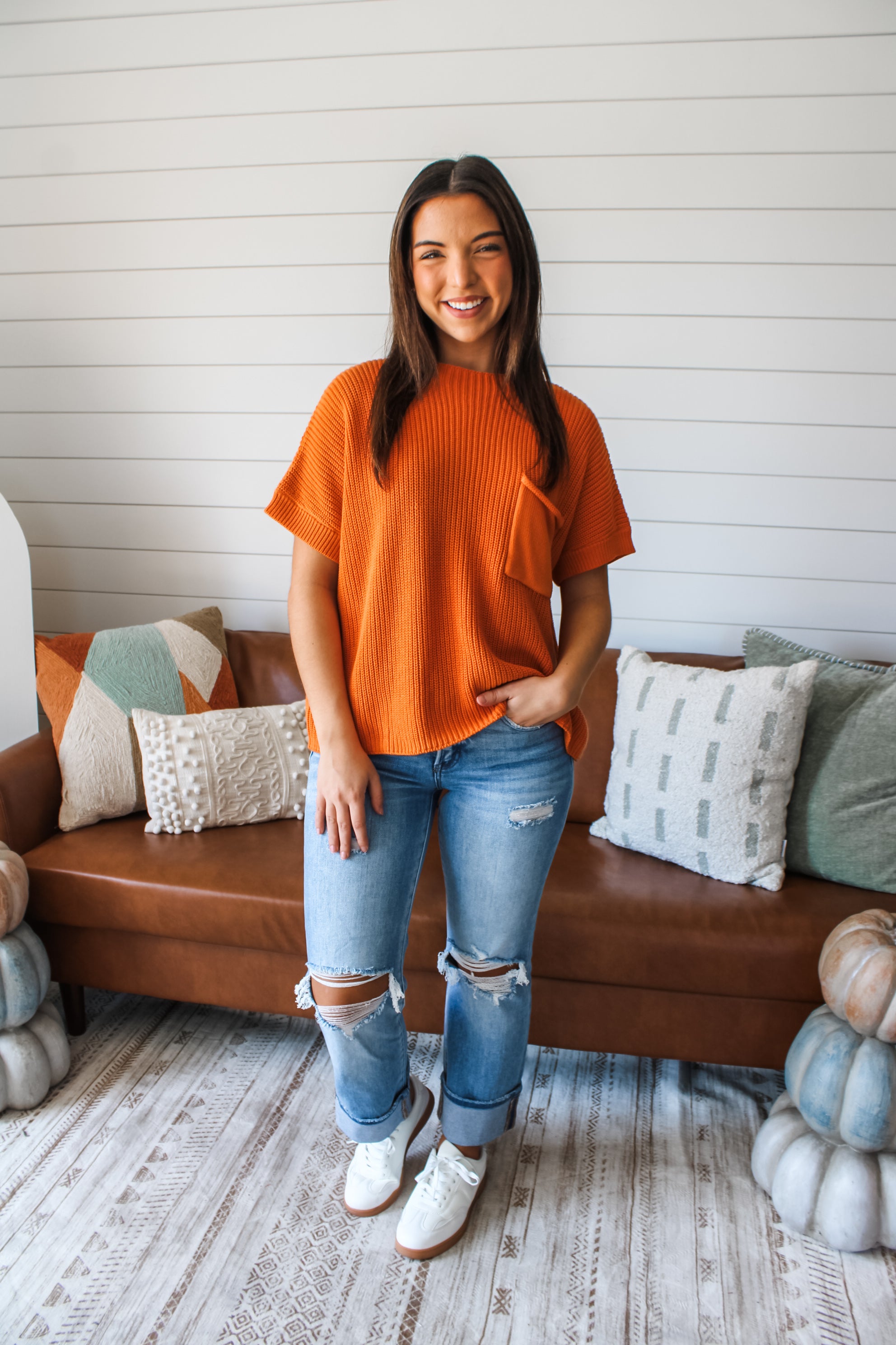Effortlessly chic, this pocket sweater is a timeless staple for any closet. Featured in a beautiful rib knit with a mock neckline, chest pocket detail and relaxed fit. It’s an easy and versatile look you can dress up or down season after season.