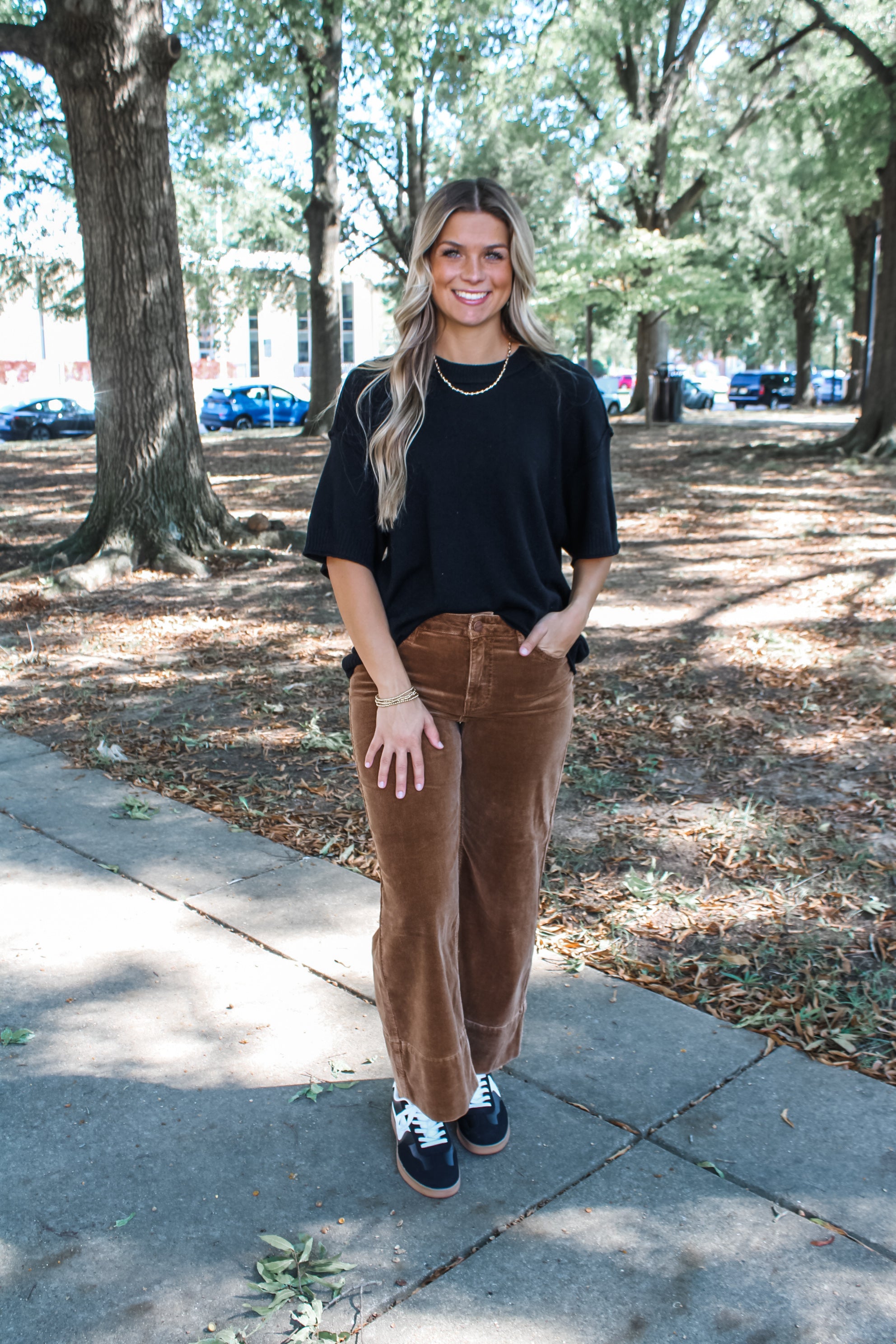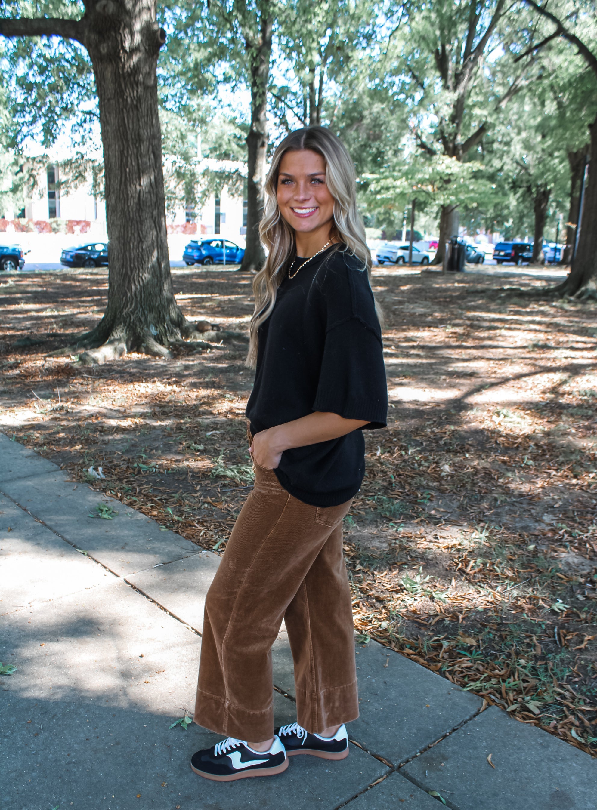Low-key yet sophisticated, this short sleeve sweater is an effortless top for any season, any occasion. Fabricated in a soft heather knit with defined seaming, rib contrast and rolled edge finishing. Featured in a relaxed crewneck silhouette for an easy and versatile staple you’ll keep reaching for.