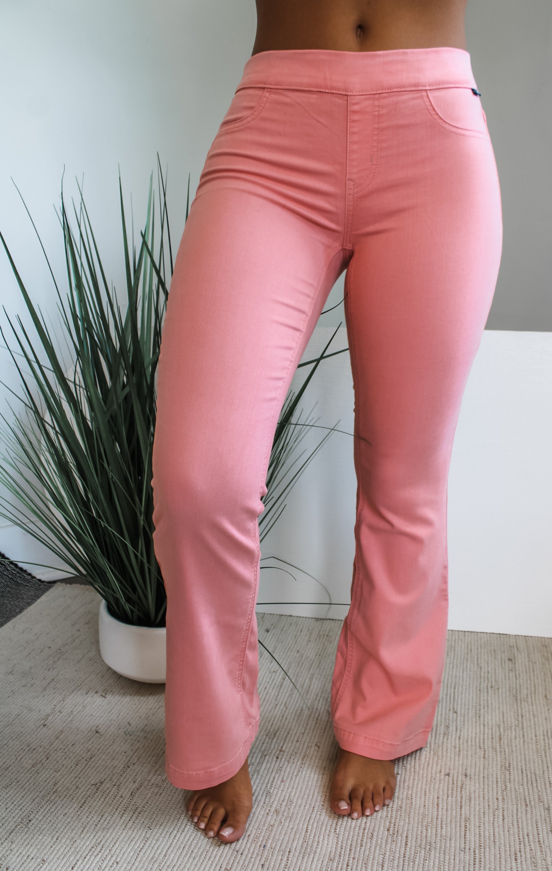 Denim made easy, the Rosalie Flare Jeggings offer deluxe comfort in style. Crafted from a premium lyocell denim for a fabrication that’s soft to the touch as it hugs your curves. Featured in a pull-on style with a mid rise stretch band waist, faux front pockets and double back pockets. A chic pair that looks and feels good, it’s a must-have for any closet.