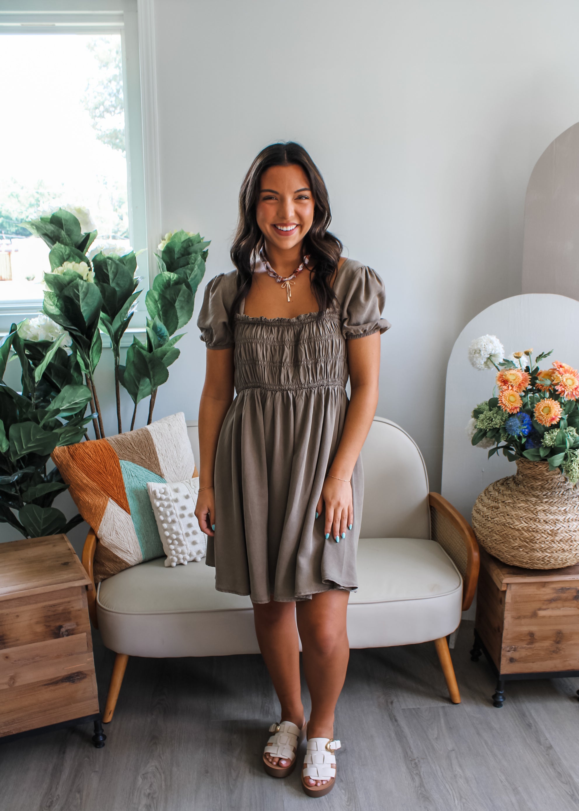 Sweet and flirty, this babydoll dress will be your new sunny day go-to! Crafted from a smooth lyocell fabrication with an empire waist fit and a flowy ruffle hem. A flattering square neckline, smock bodice and puff sleeves complete the charming style.