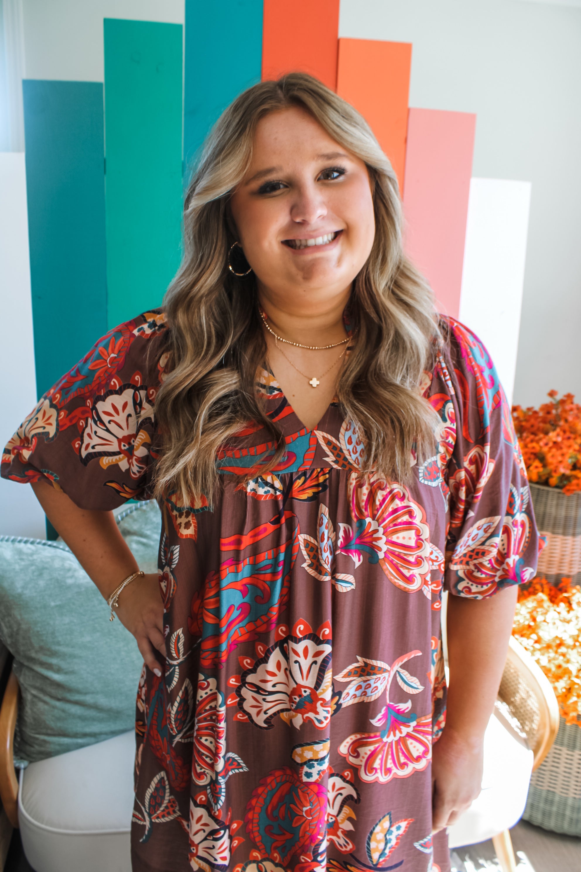 Styling tips: It’s an eye-catching one-and-done look you can dress up with heels and statement jewelry for family events, pair with flats and a tote for coffee dates, or wear with western boots and a shoulder bag for out of town plans.