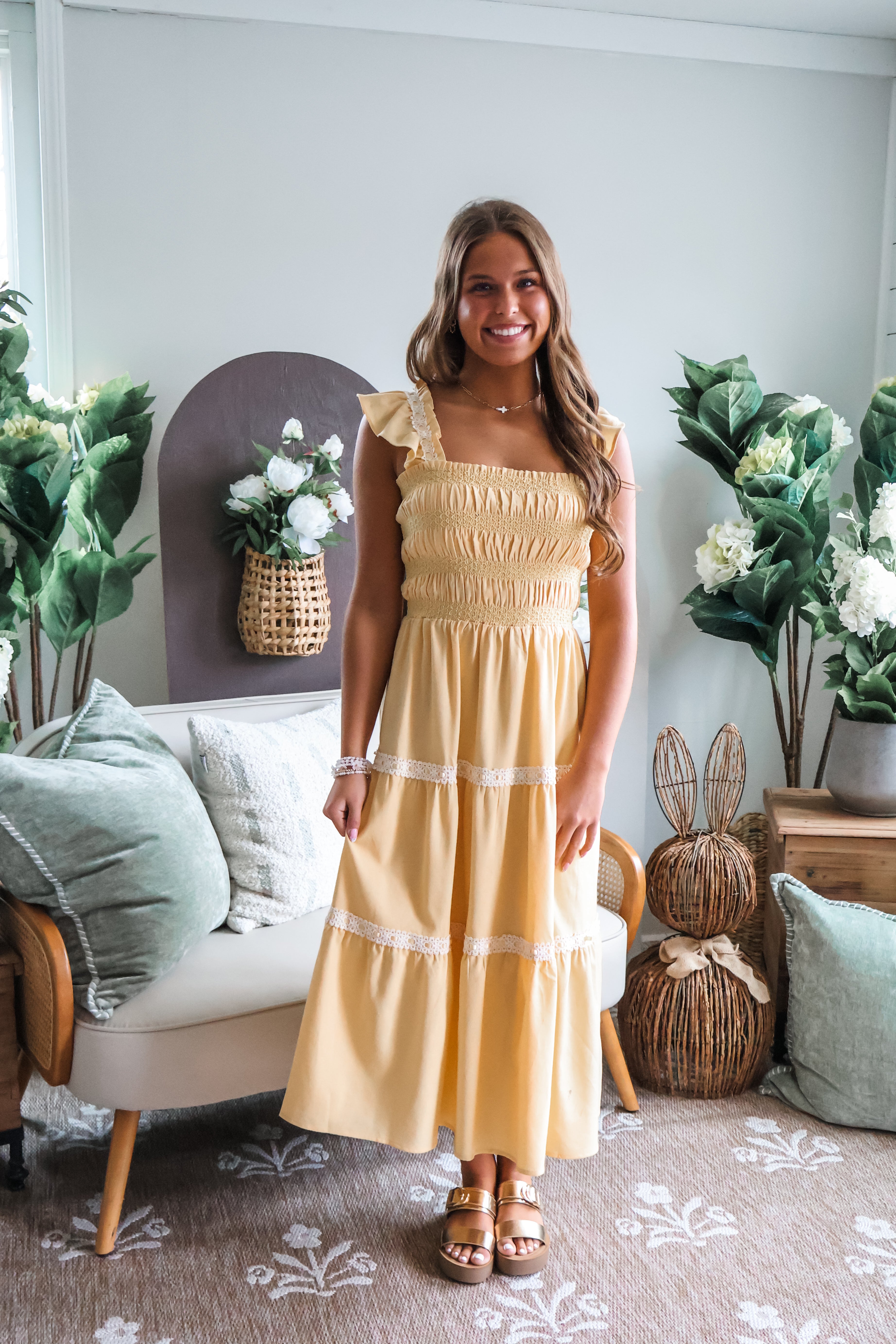 Styling tips: Pair it with strappy slides and simple jewelry for Sunday brunch, elevate it with espadrille wedges and a clutch for spring gatherings, or dress it up with statement jewelry and heels for special occasions.