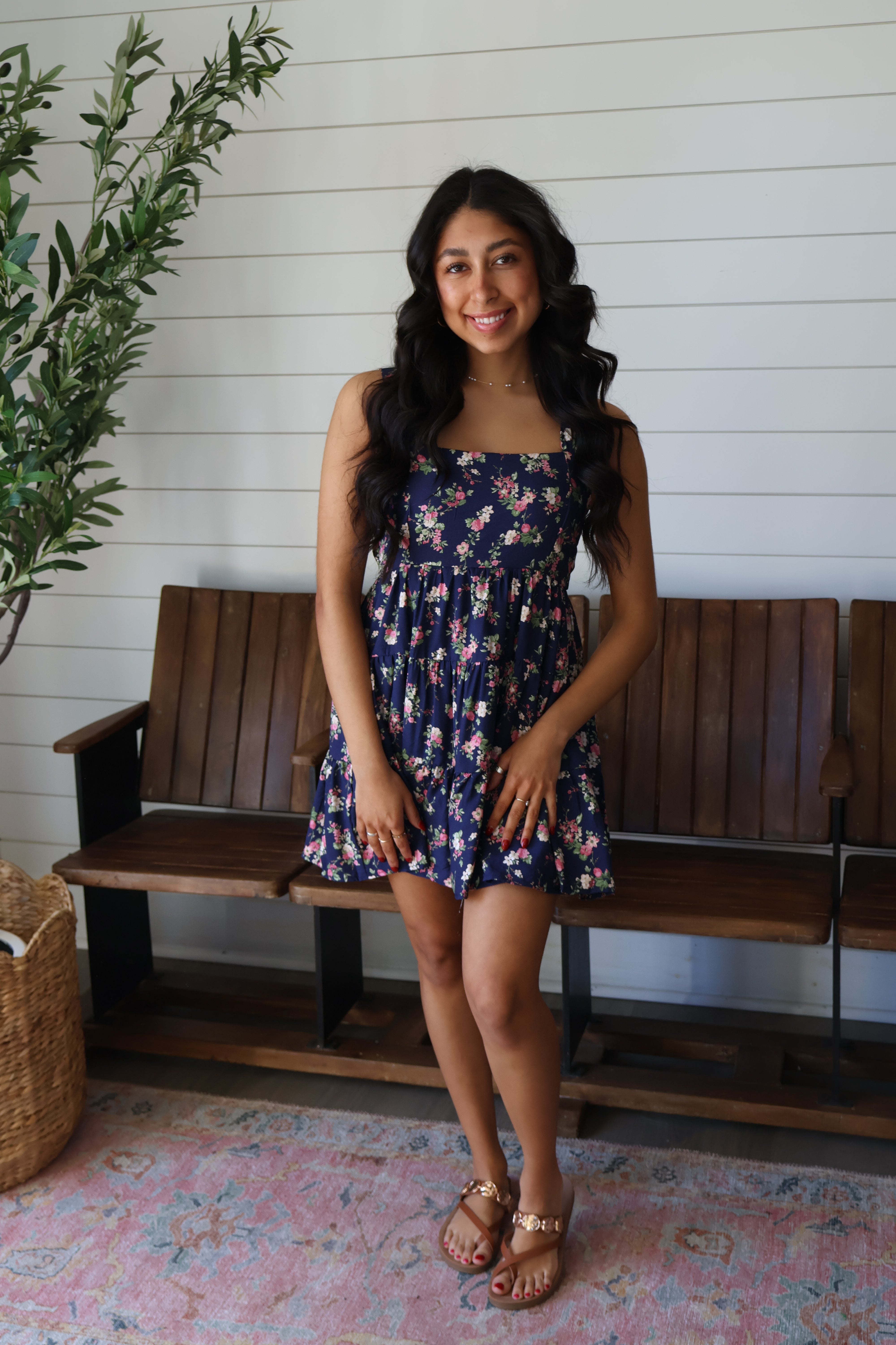 Who loves a good sundress? This one is perfect to head into summer! Pair with a lightweight cardigan or denim jacket. Runs tts. Model is wearing the small and is 5”5. Small 0-4 medium 6-8 large 8-10.