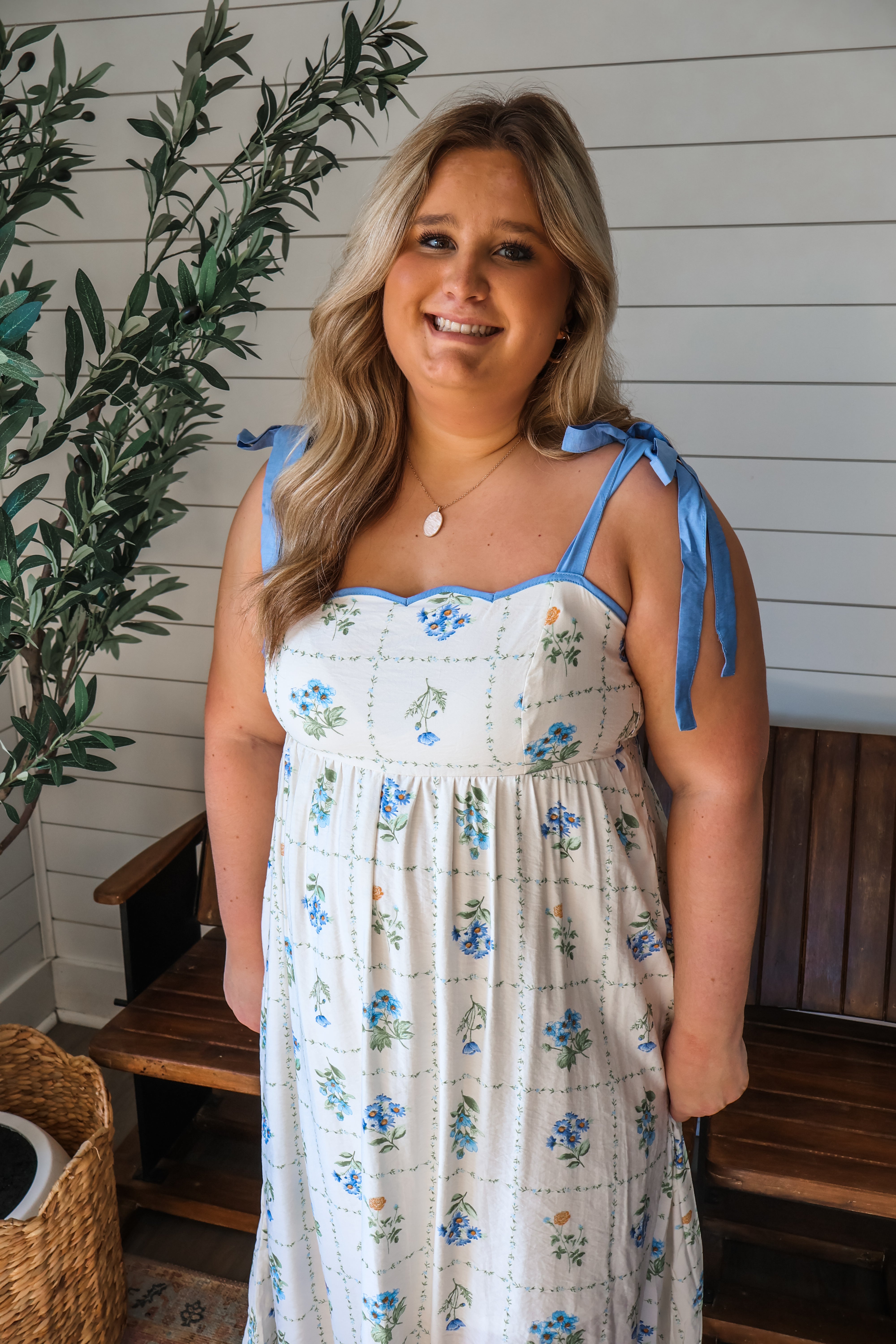 Floral and feminine, this midi dress is an effortlessly charming whether you’re attending garden parties, taking a stroll downtown, or meeting up for brunch. Crafted from a lightweight woven for a breezy and comfortable feel, it features an empire waist silhouette and a flowy hem. Bow tie straps and a scallop trim neckline complete the sweet and sophisticated style.