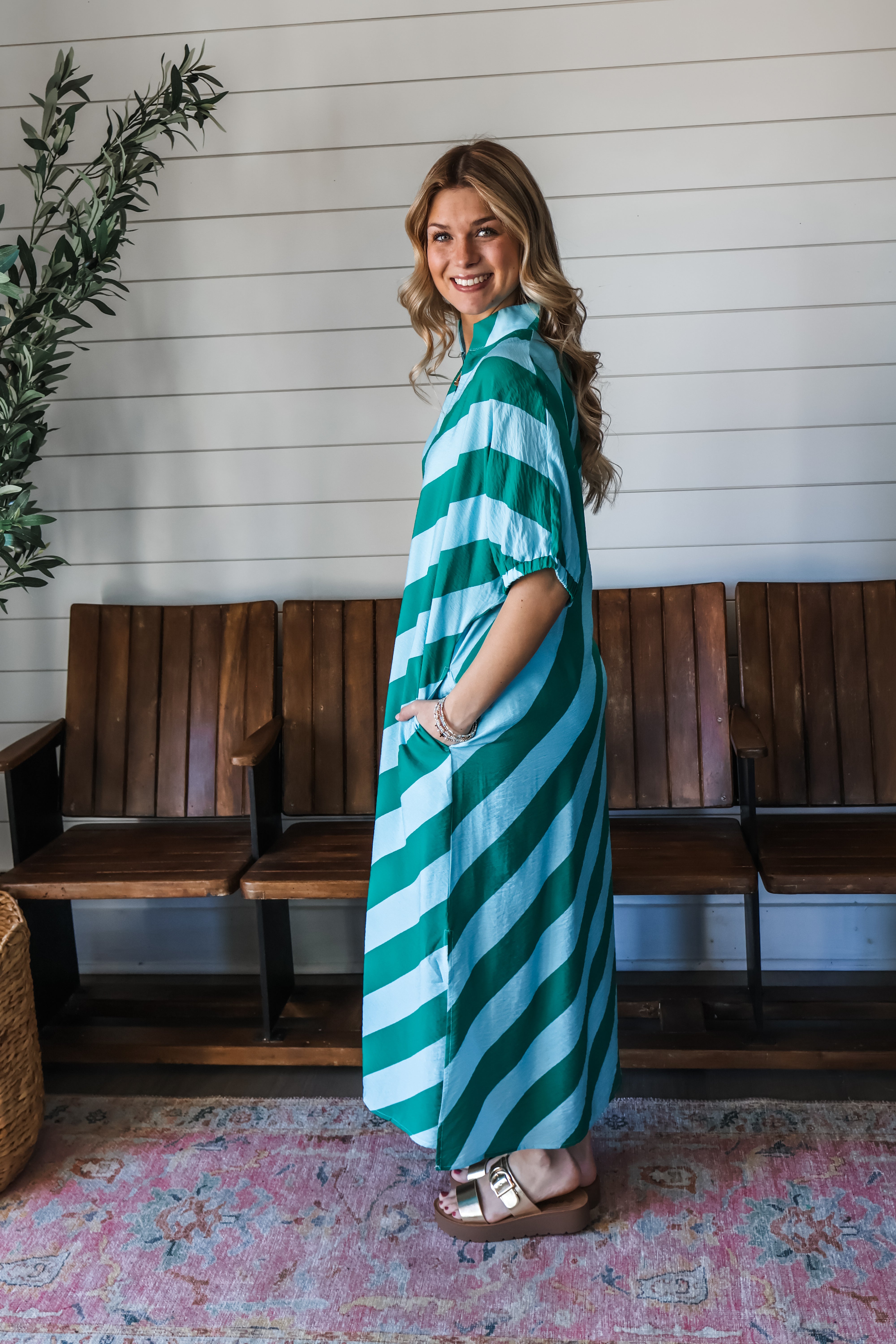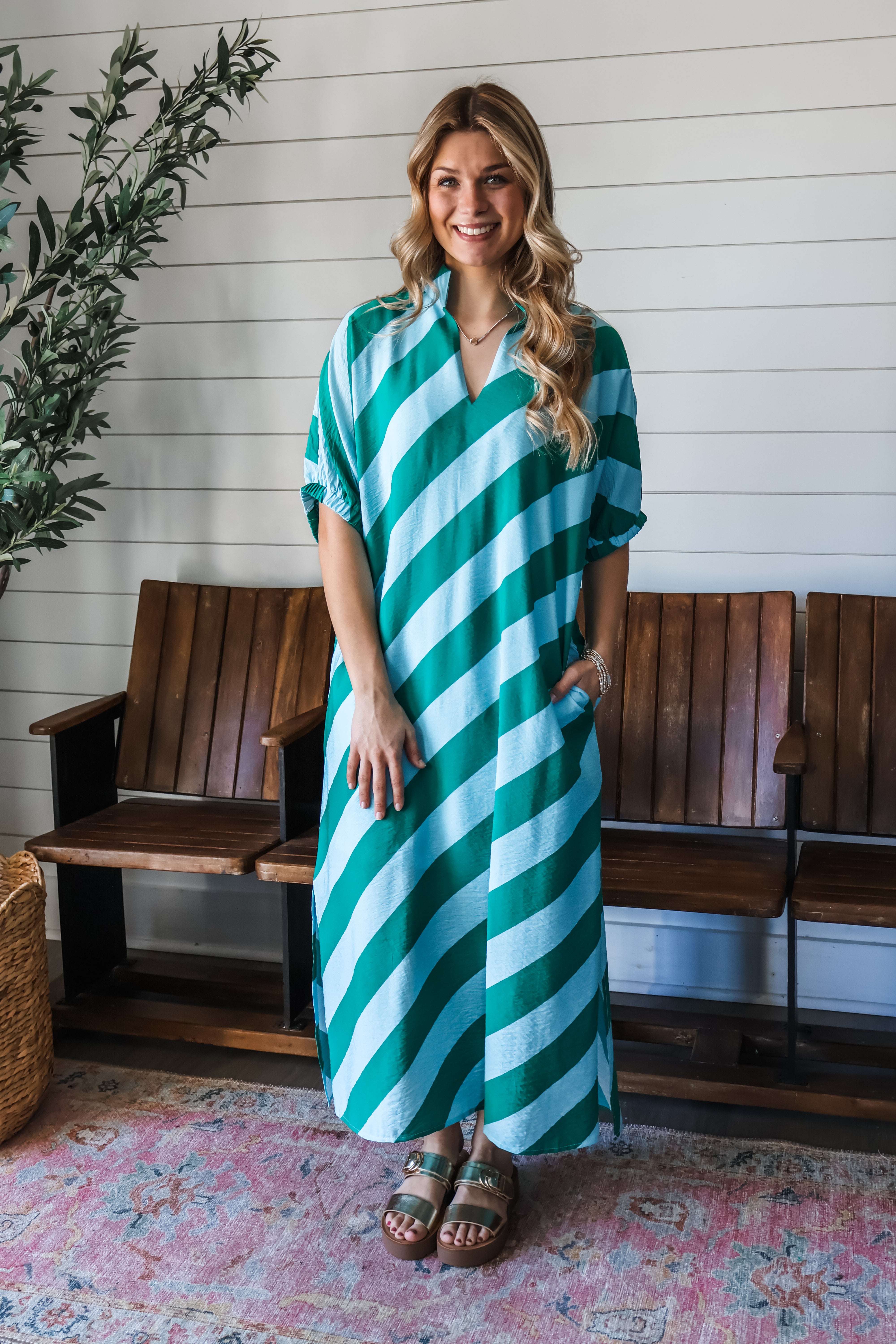 Nantucket Stripes Pocket Dress • Green
