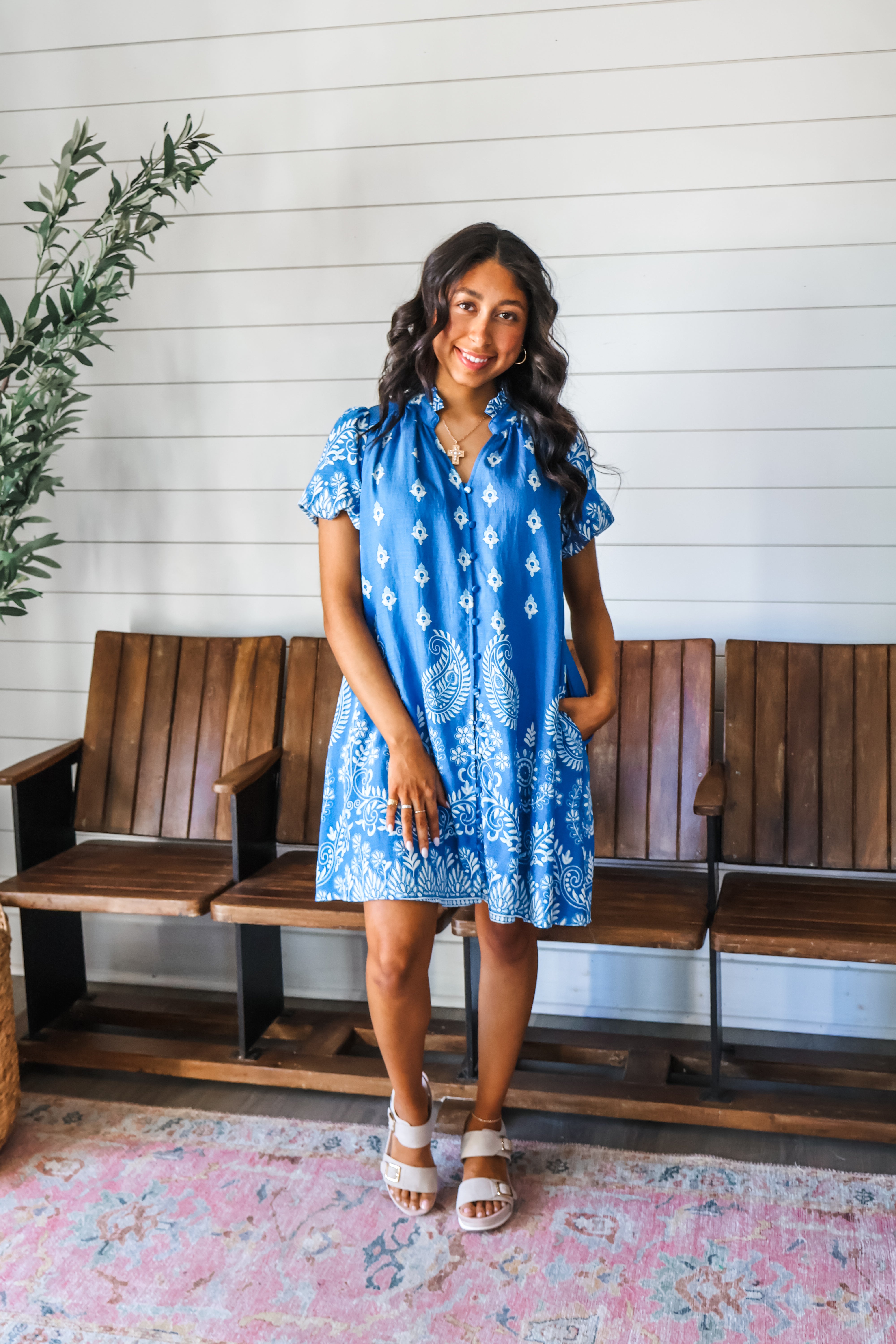 Paisley Paradise Button Front Dress • Blue