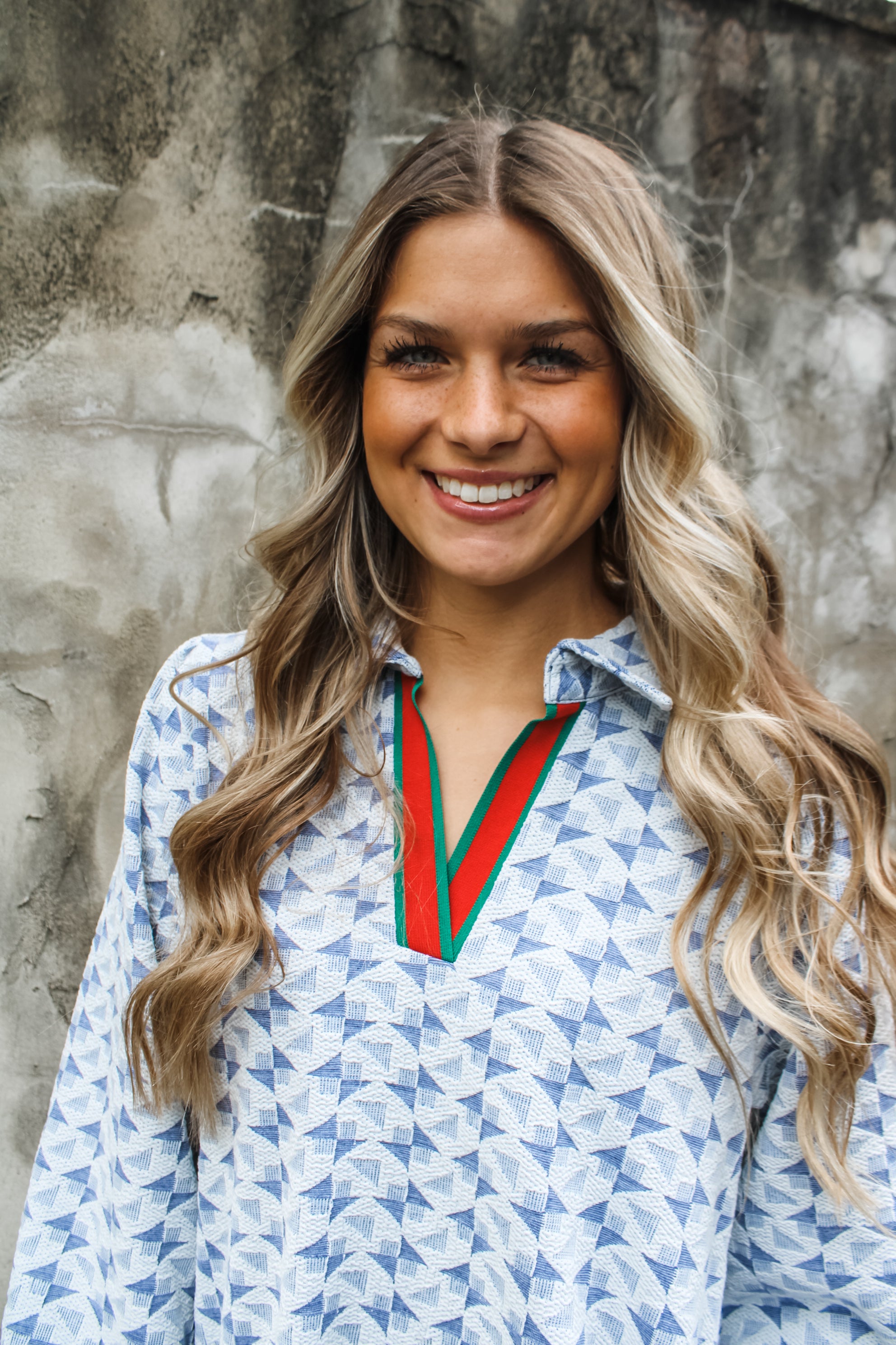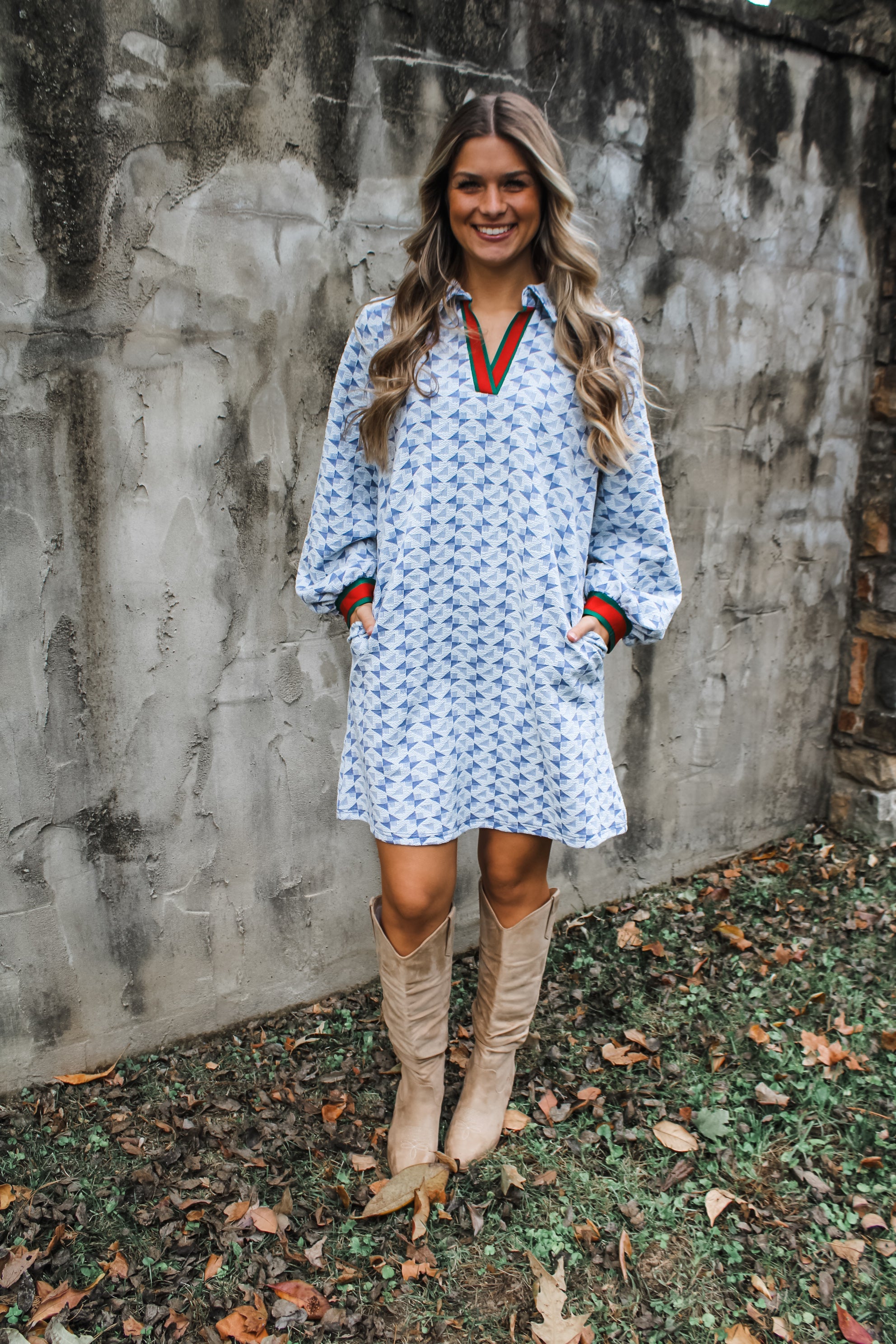 Dress to impress with unexpected details. This quilt-inspired look is versatile for the office, family gatherings and holiday parties. Crafted in an embossed and patterned knit, with a notched neckline, contrast stripe detailing, puff sleeves and a simple a-line silhouette.