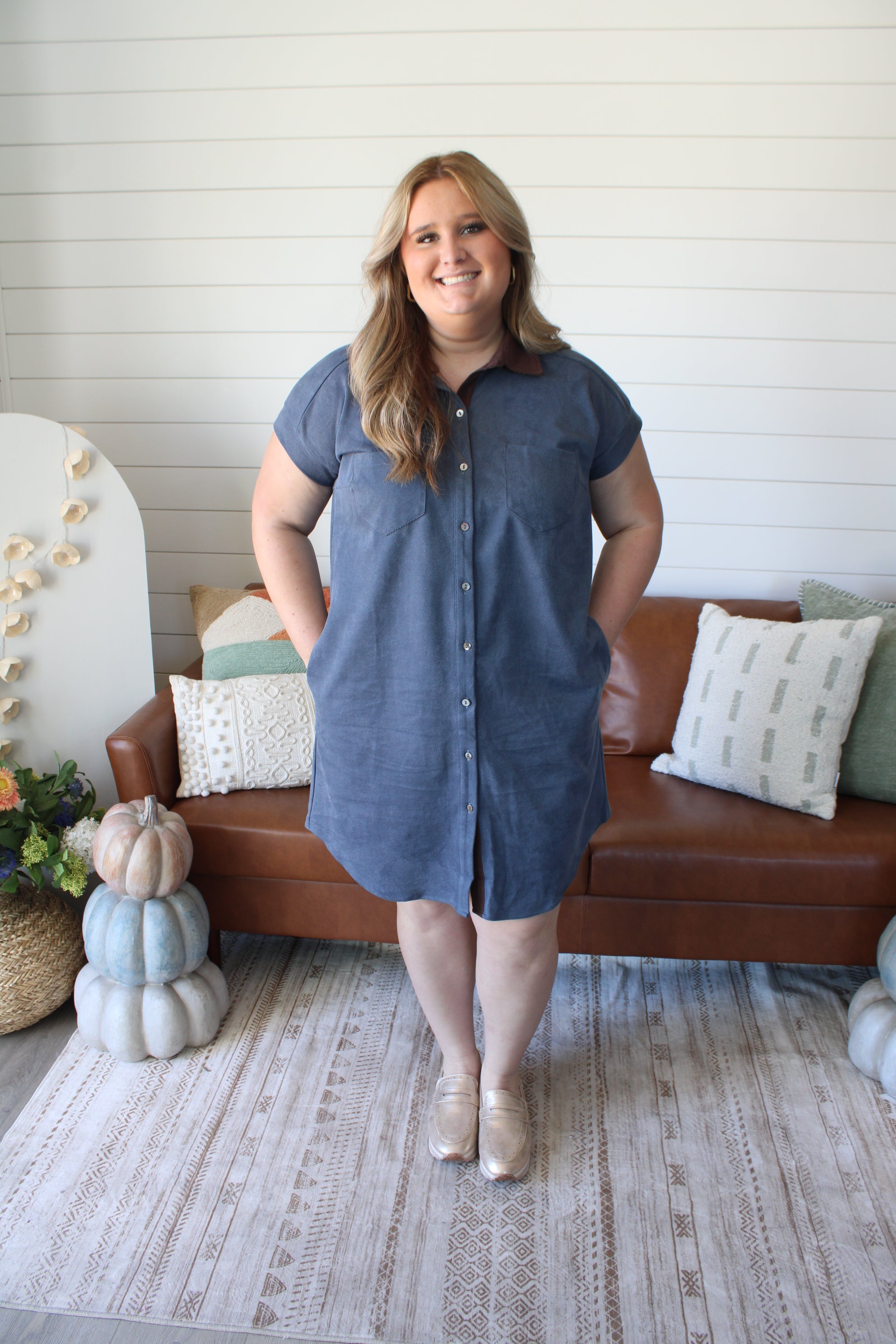 Set The Tone Twill Suede Dress • Slate - PLUS