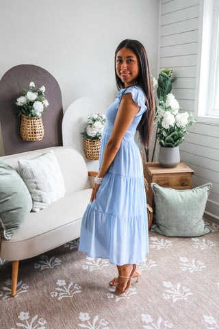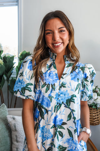Morning Blooms Bow Strap Midi • Blue Floral - PLUS