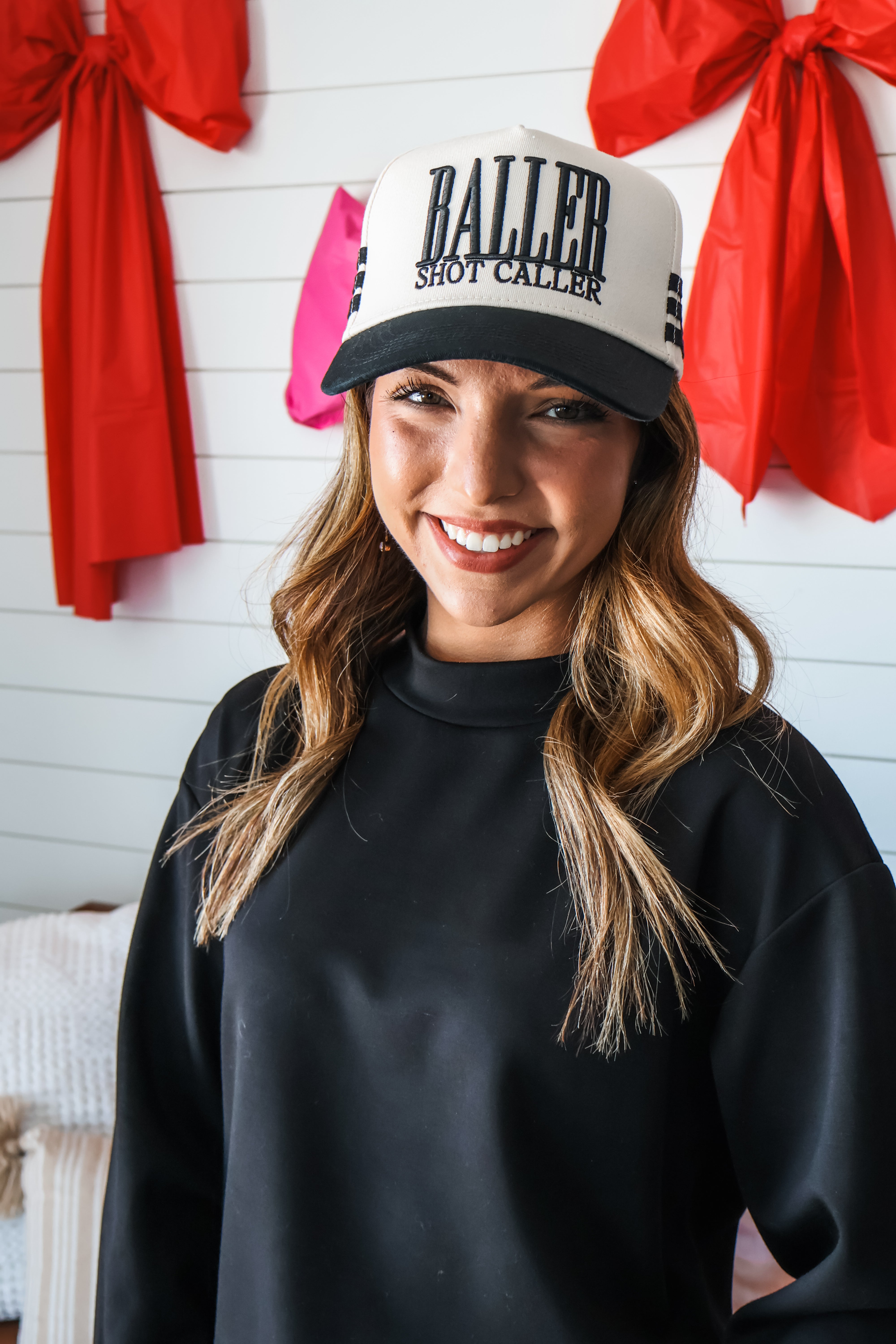 Complement your game day looks with this playful trucker hat! With a fully embroidered design, striped detailing, contrast bill and an adjustable snap closure. One size. Materials may have natural variations. Colors may vary from different viewing devices and lighting.