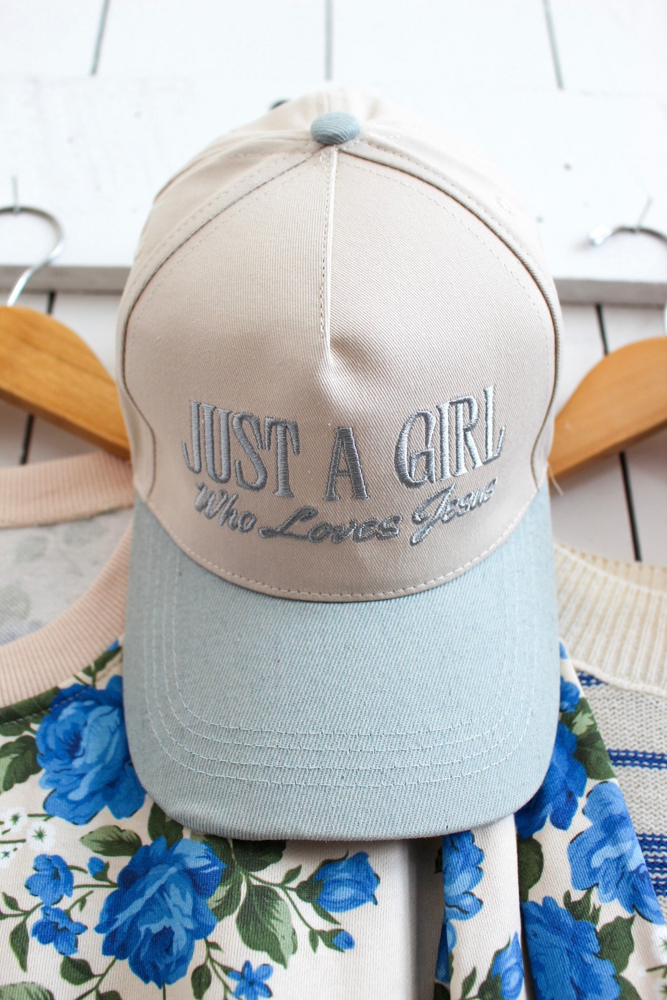 Just A Girl Who Loves Jesus Trucker Hat • Frost Blue