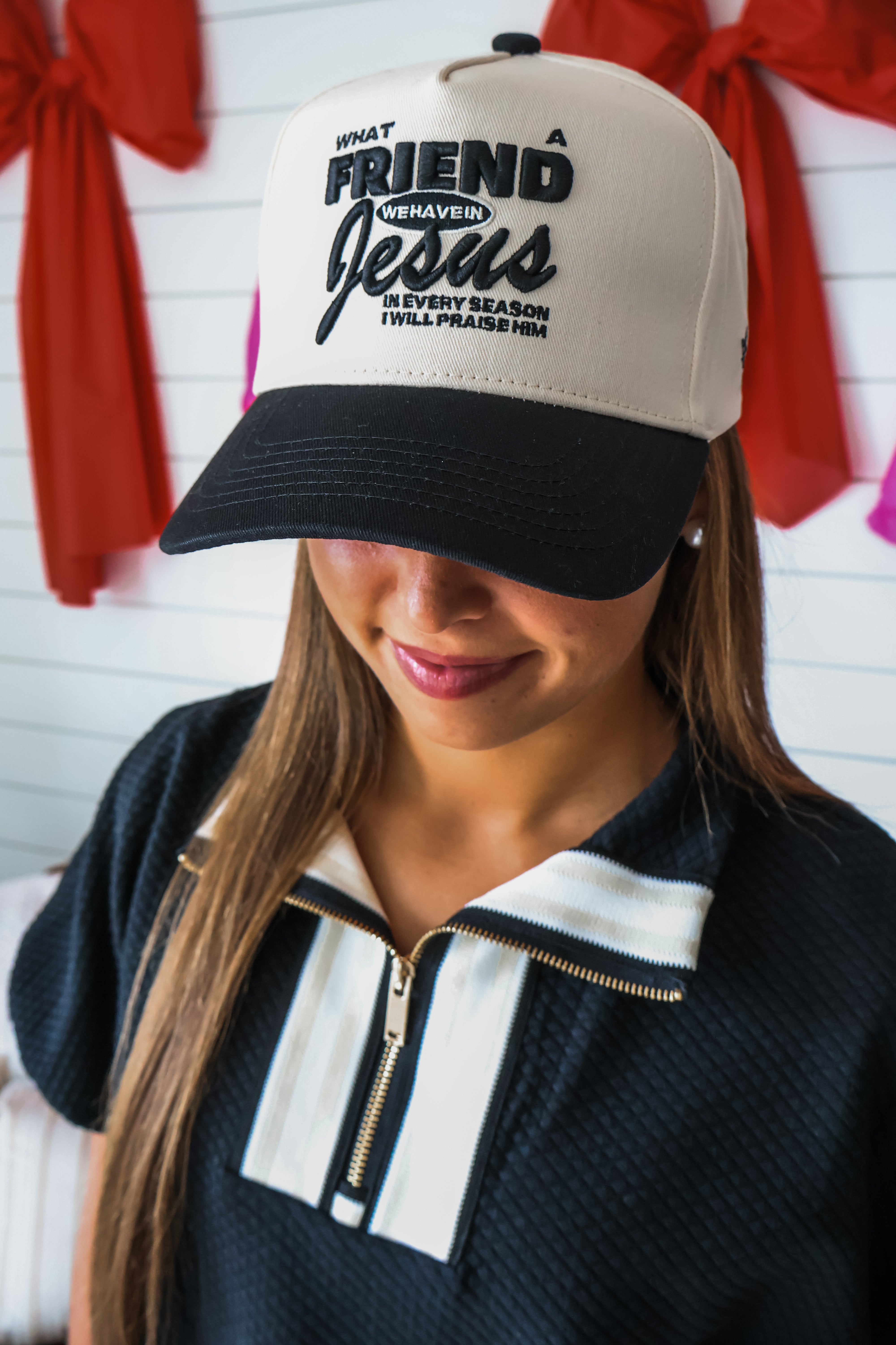 Add a dose of faith and fashion to any outfit with this cute trucker hat! With a fully embroidered design, contrast bill and an adjustable snap closure. One size. Materials may have natural variations. Colors may vary from different viewing devices and lighting.